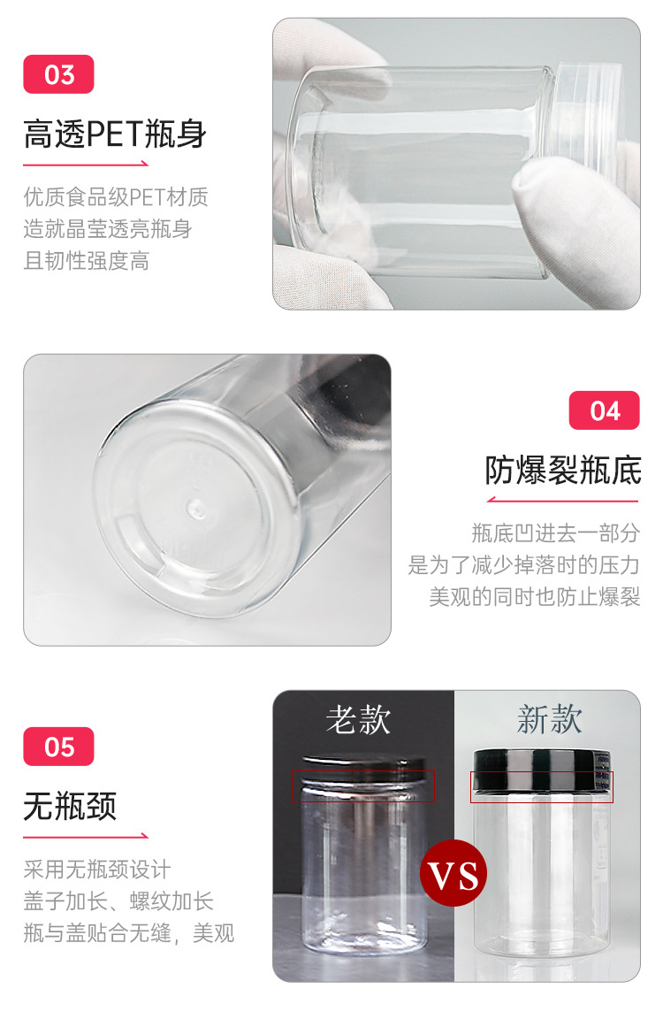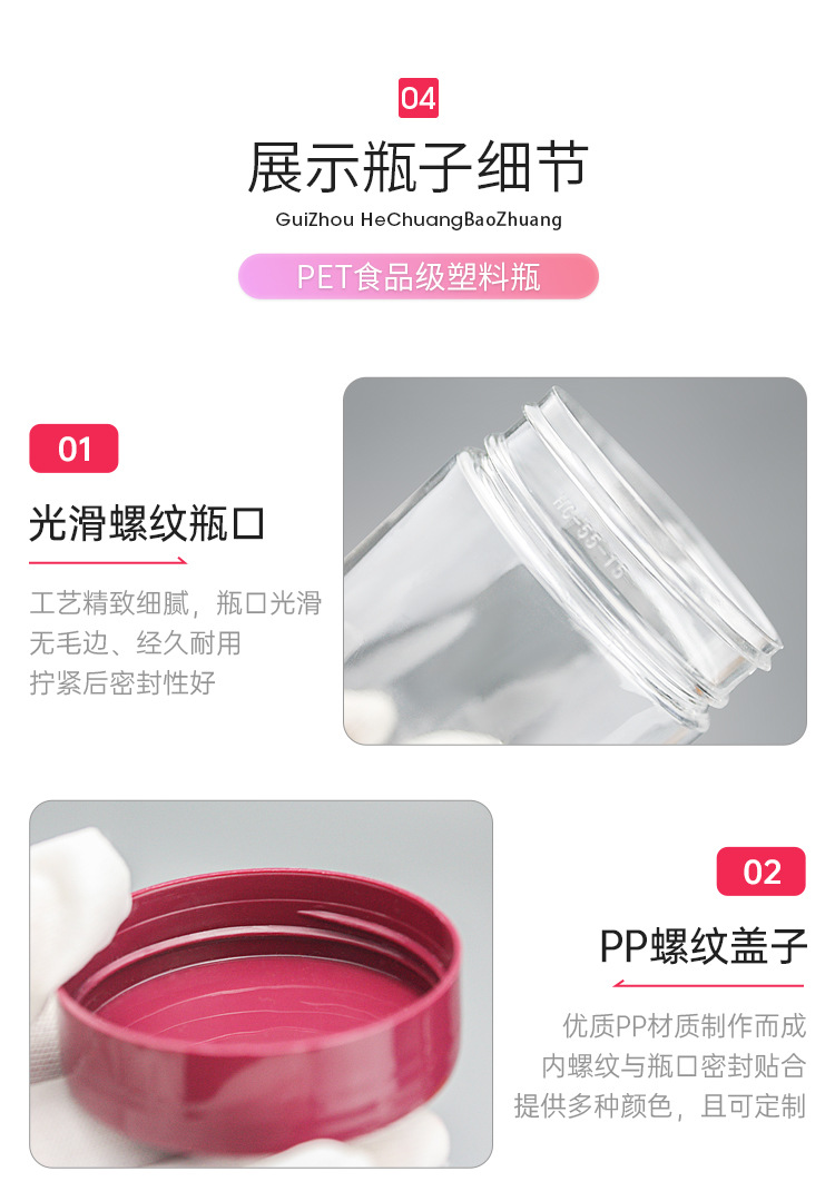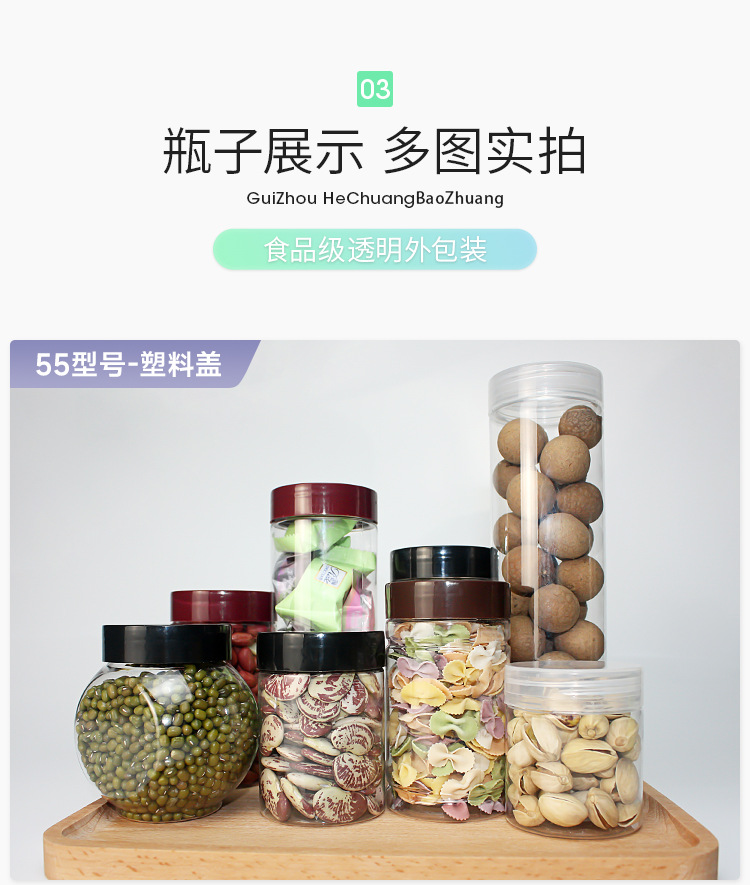 Hechuang 包装卸売 PET 食品グレードのプラスチックボトル透明肥厚プラスチック瓶専門穀物スナック密封瓶