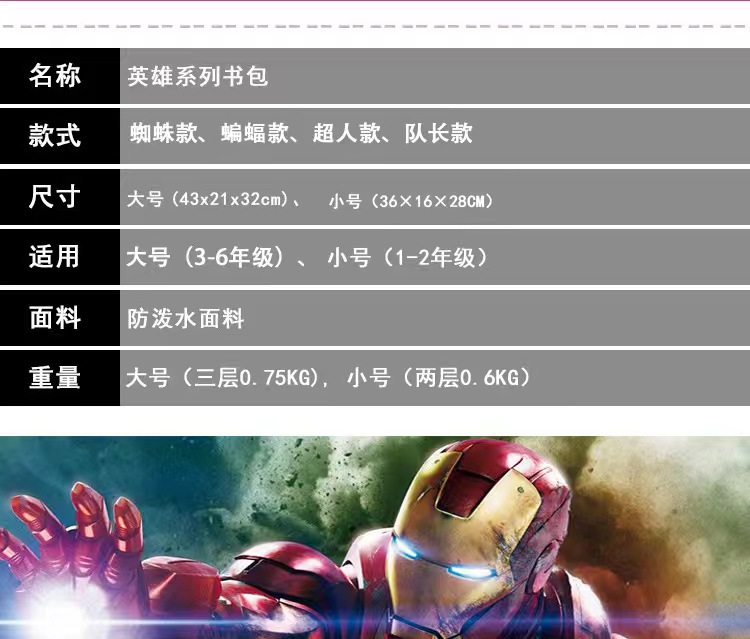 メーカー児童漫威アメリカ隊長スーパーマンバットマンスパイダーマンクール漫画小学生男女かばん