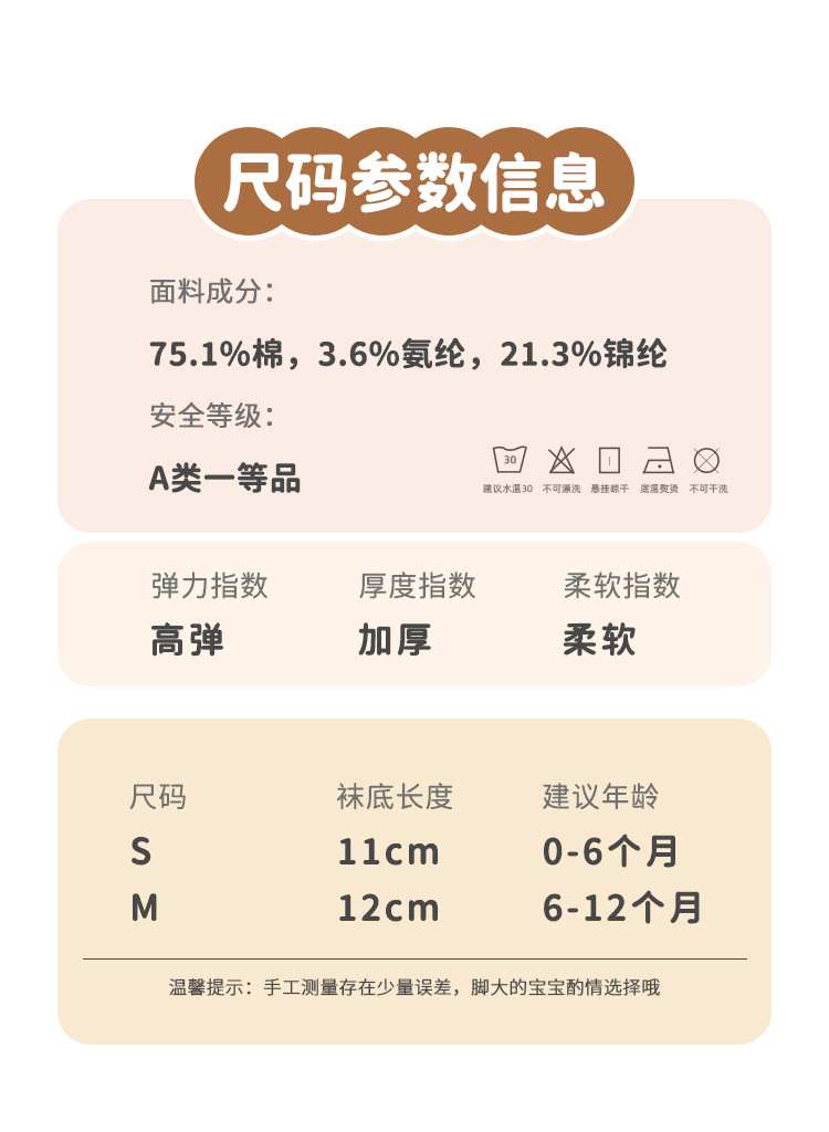 子供用靴下のサイズ Sサイズ 底11cm(生後0~6ヶ月推奨),Mサイズ 底12cm(生後6~12ヶ月推奨)