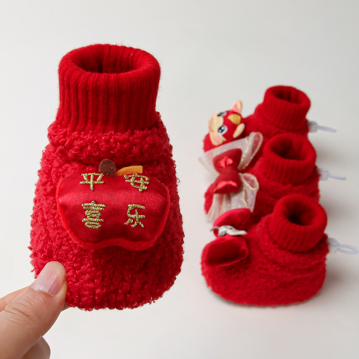 婴儿鞋袜加绒冬季宝宝袜套0-3个月加绒保暖鞋新生儿新年宝宝鞋厚