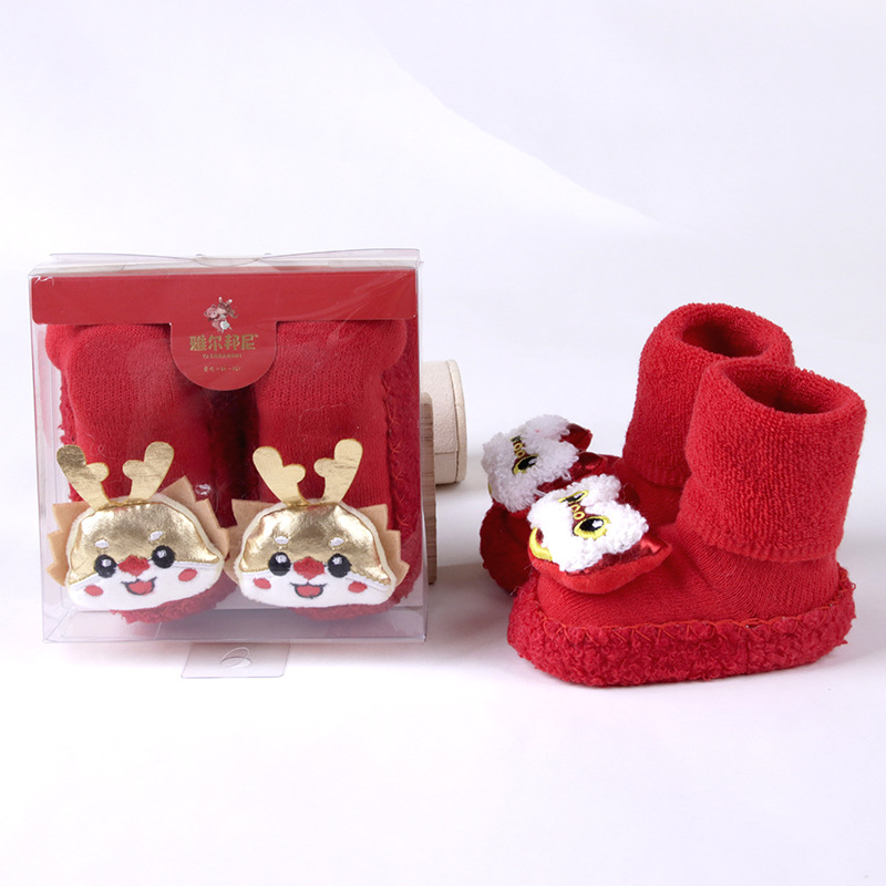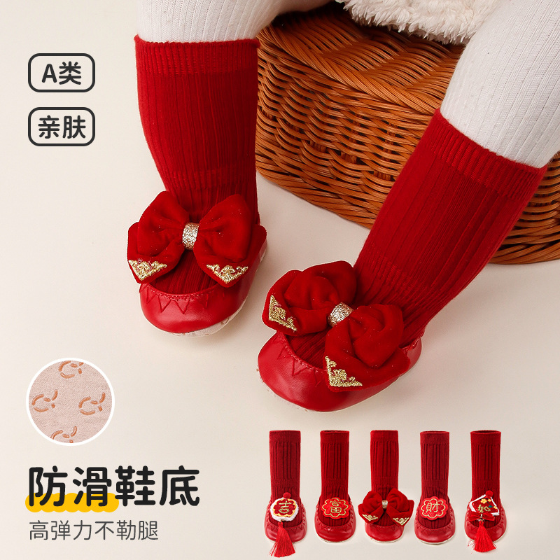 2023秋冬新品新生児赤ちゃん靴下日曜日百歳新年本命年赤ちゃん骨なし大赤靴下