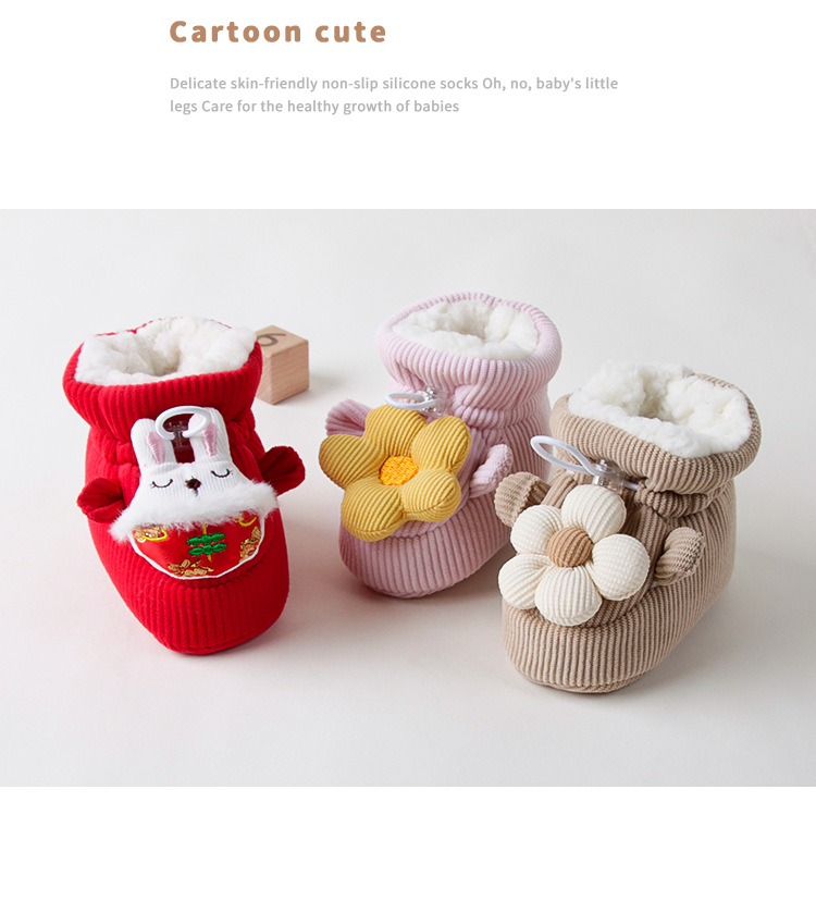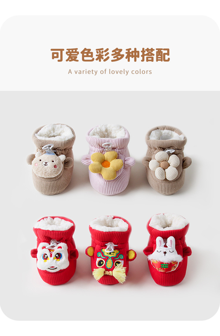 新生児赤ちゃん秋冬加毛綿靴保温大紅新年赤ちゃん学歩靴かわいい漫画靴靴下