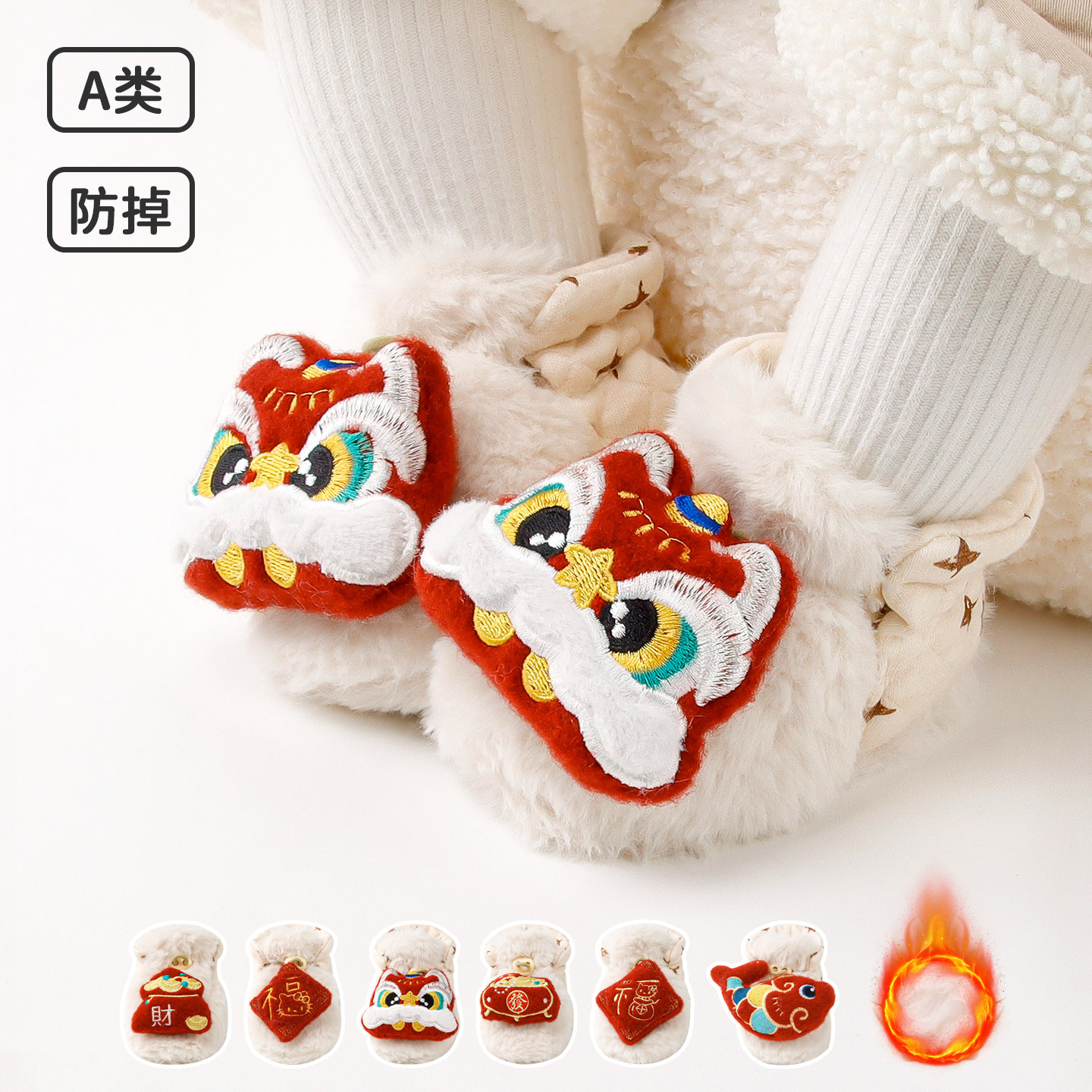 婴儿鞋袜红色加绒中筒保暖宝宝鞋可爱新年小马不掉室内防滑鞋软底