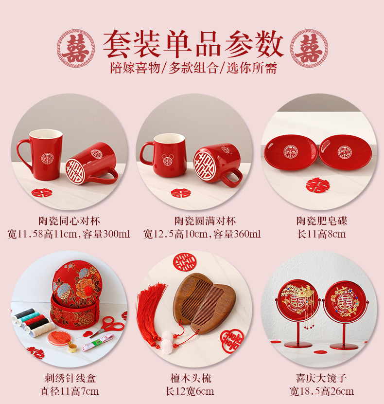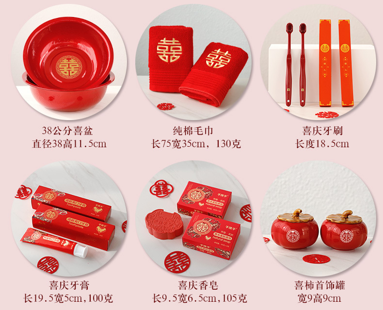 婚礼陪嫁套装礼盒婚庆结婚洗漱用品大全娘家女方备婚嫁妆礼物