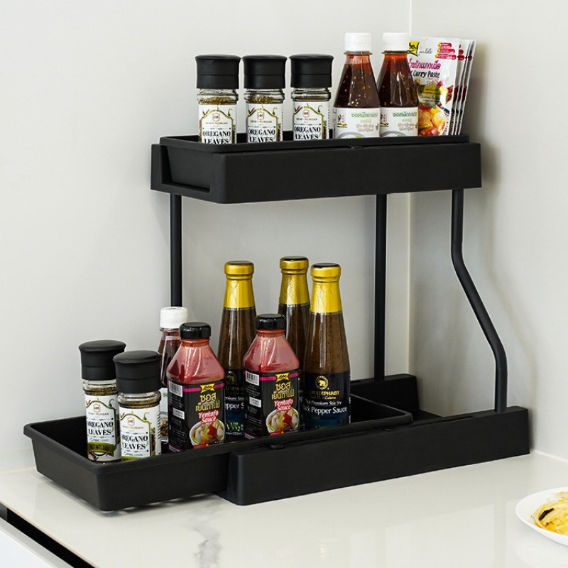 新しいクロスボーダーラベル付き二層引き出し式収納ラックキッチンシンク下スパイスラック引き出し収納ラック
