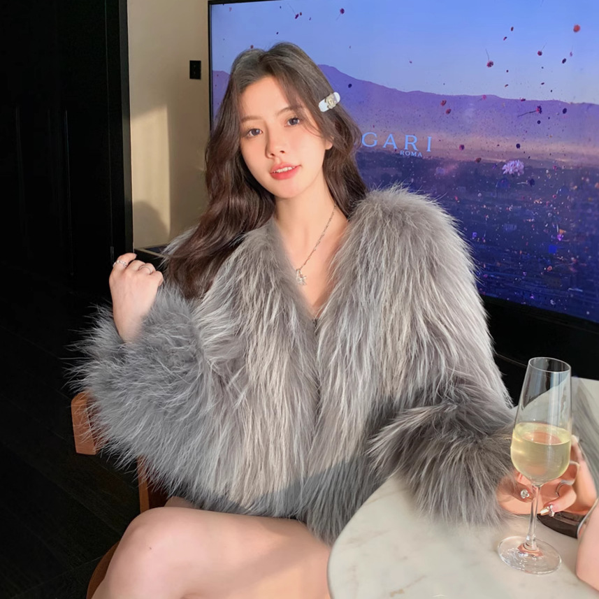 キツネの毛皮のコート女性の冬の若いモデルの短い韓国版ファッションvネックの修身はタヌキの毛のコートをまねます。