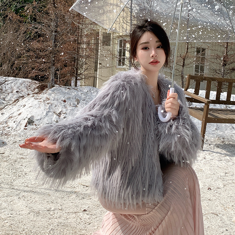 2025款加棉加厚仿貉子毛皮草外套女毛毛大衣秋冬网红年轻新款海宁