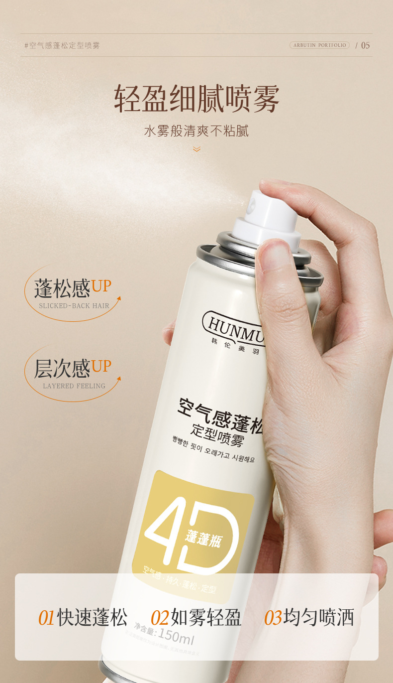 韓倫美羽スタイリングスプレー 自然で長持ちするエアリーでふわふわ、速乾性、強力なノンウォッシュドライヘアスタイリングヘアジェル