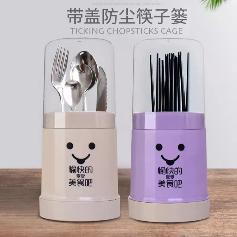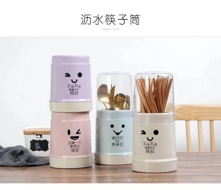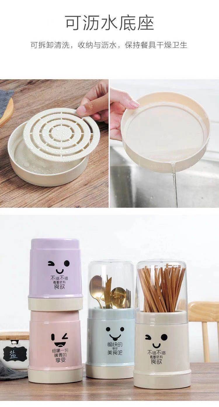 漫画箸立て家庭用蓋付き防塵プラスチック水切り箸立てキッチン収納ケース食器収納棚