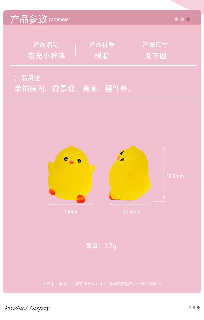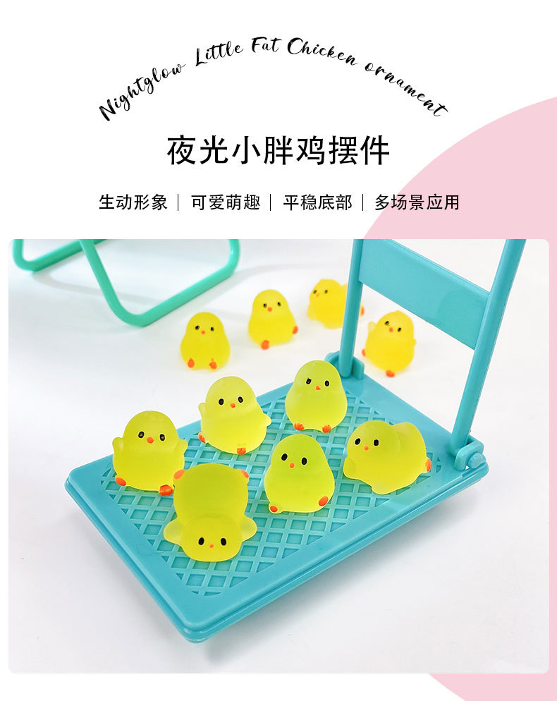 儿童发光玩具迷你夜光小鸡动物树脂diy配件汽车中控台装饰小摆件