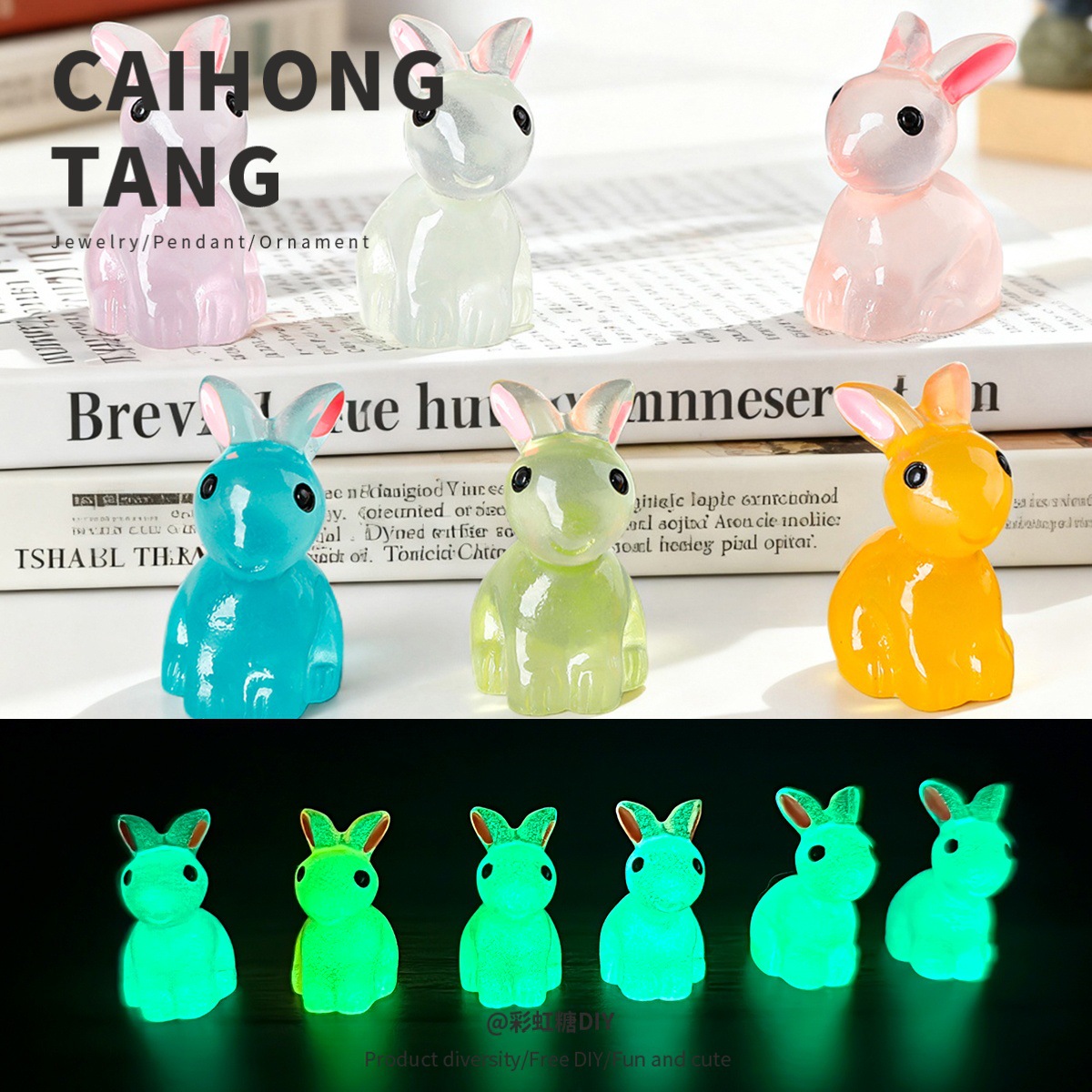 立体樹脂diyアクセサリーアクセサリーシミュレーション白ウサギの新商品卸売りかわいいカラー夜光小動物置物