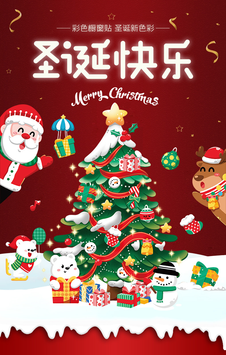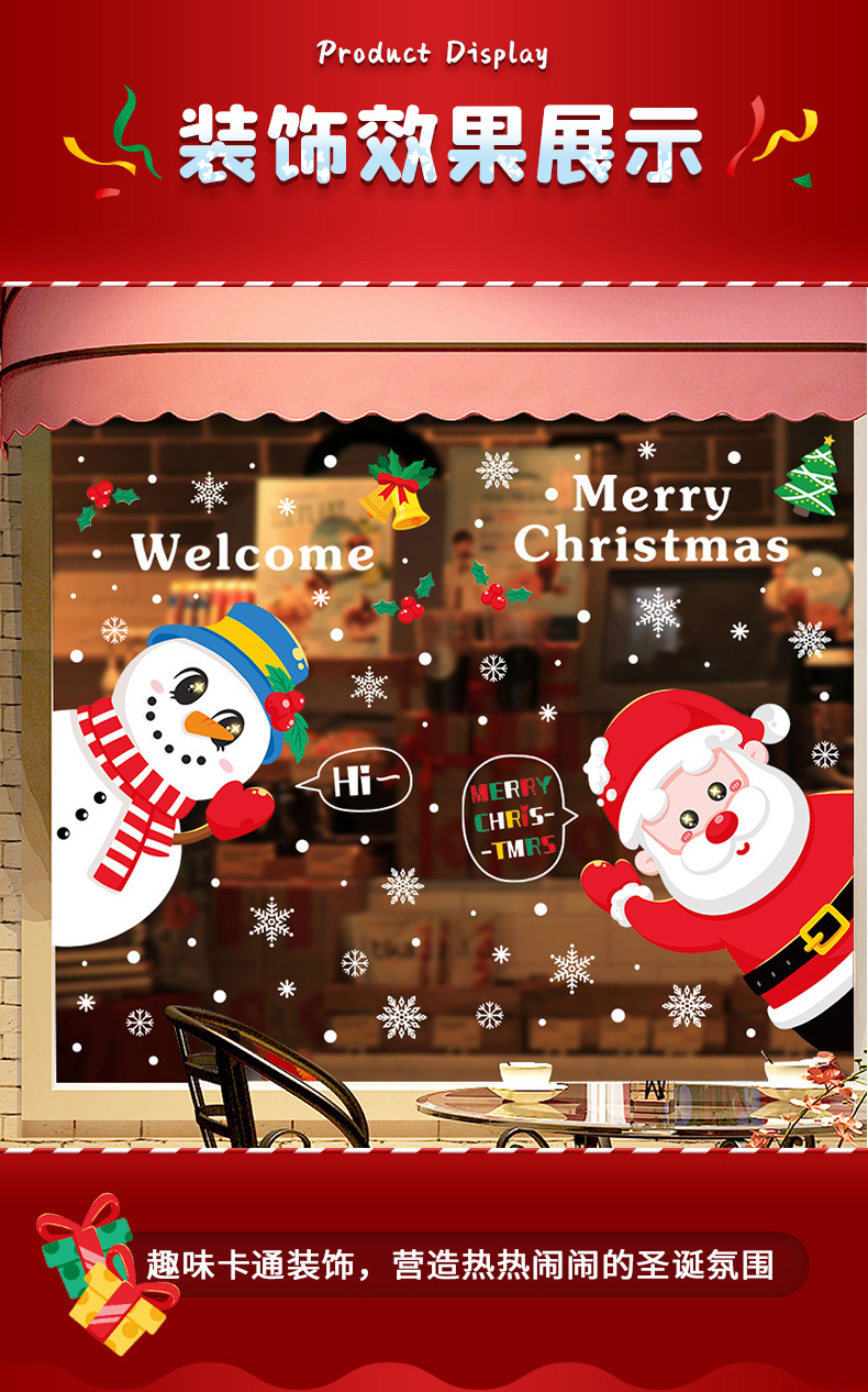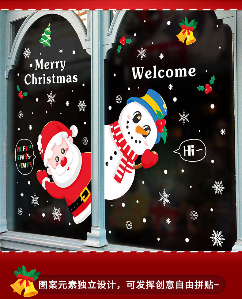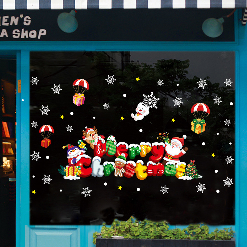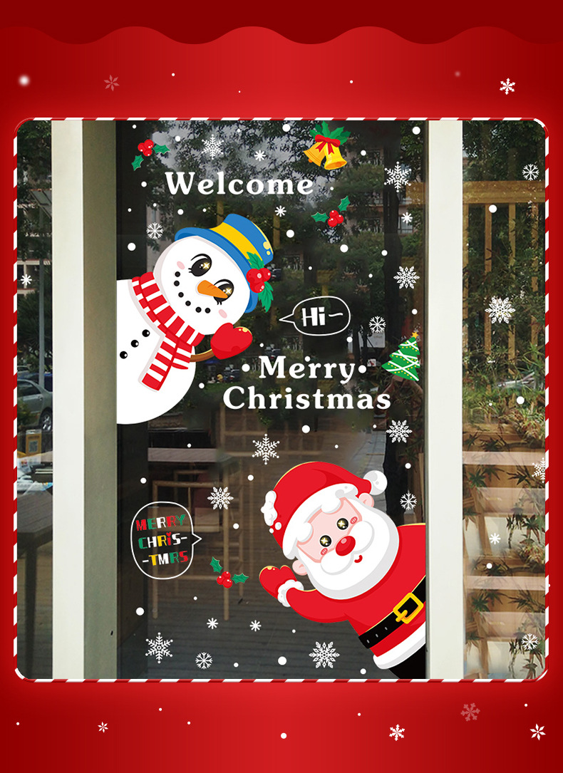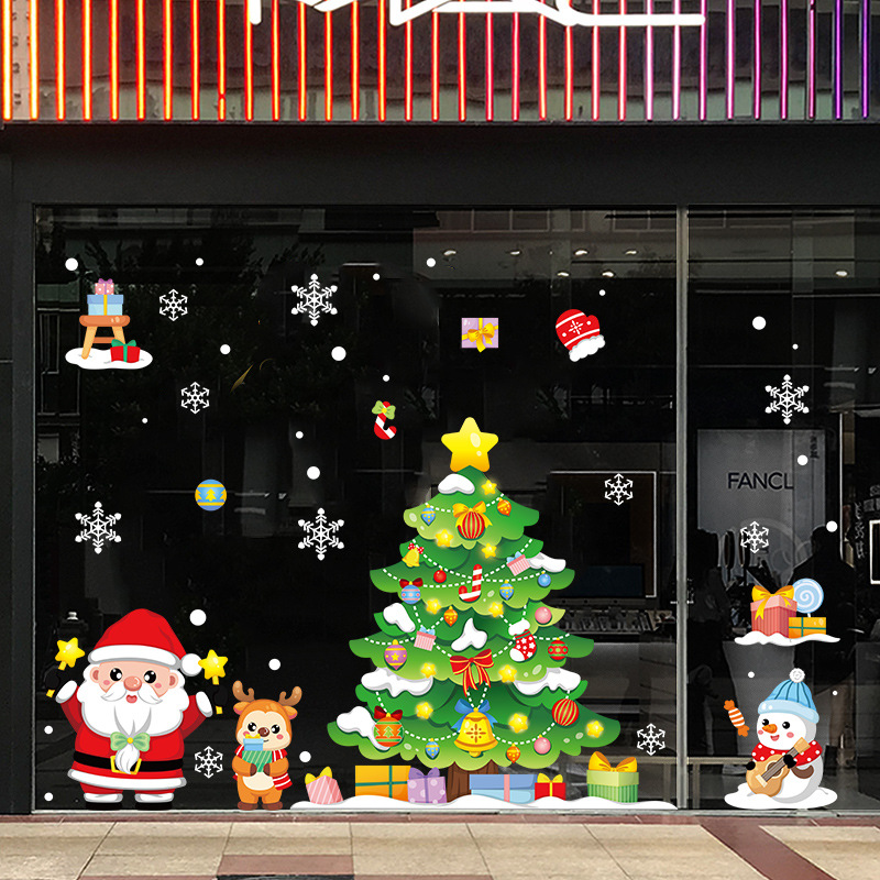2025クリスマス装飾品店舗ショーウインドーガラスシールドア貼りシーン配置サンタクロースの木の壁貼り絵
