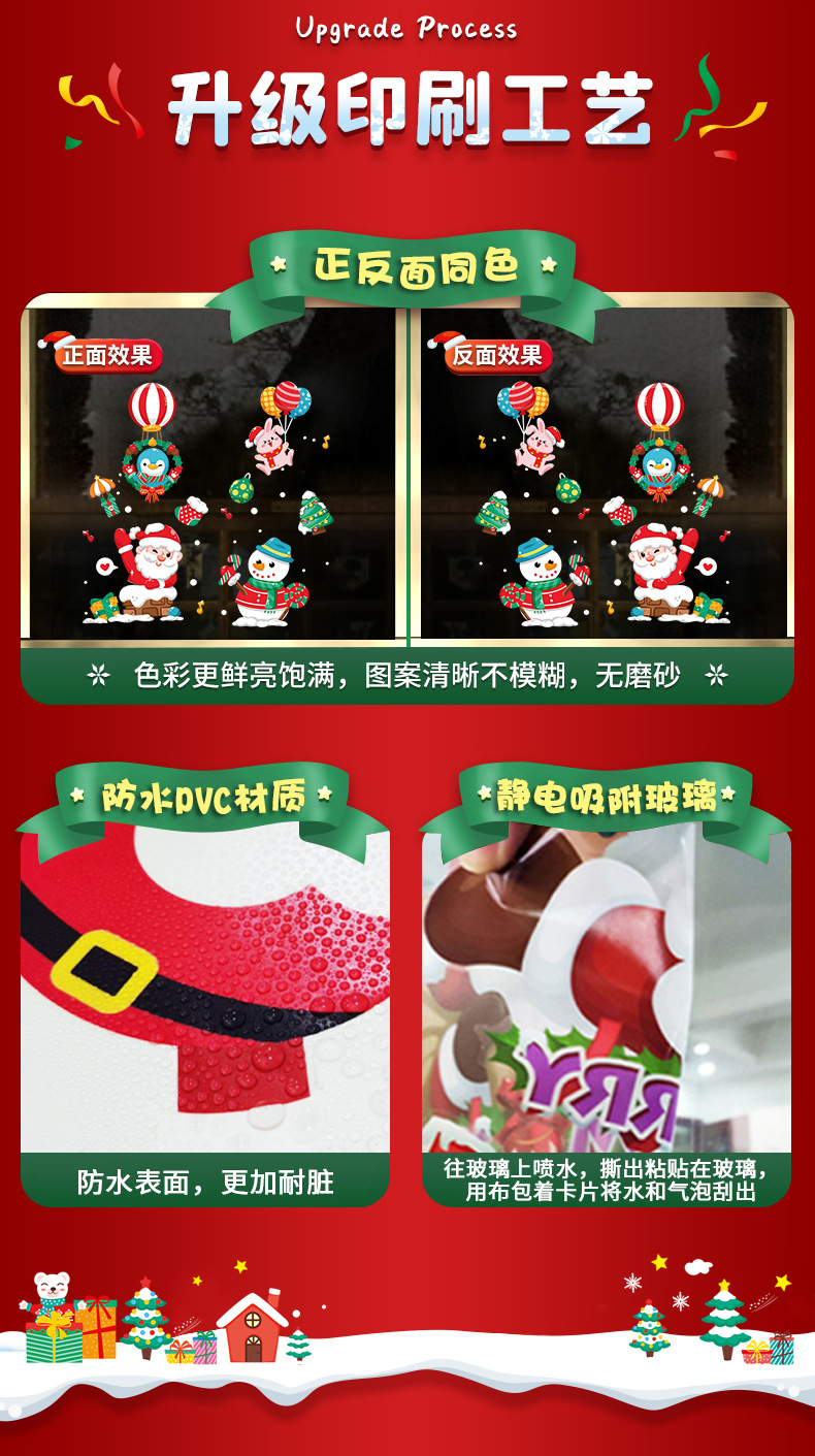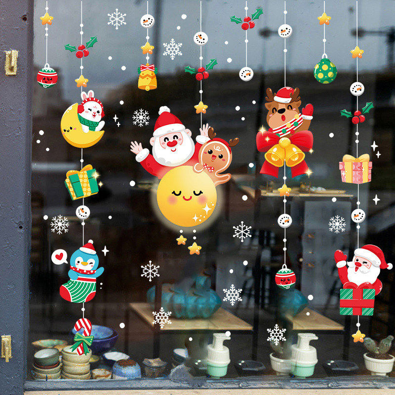 窓貼りサンタクロースツリー店舗クリスマス装飾品ガラスドアシール静電気貼り絵シーン配置