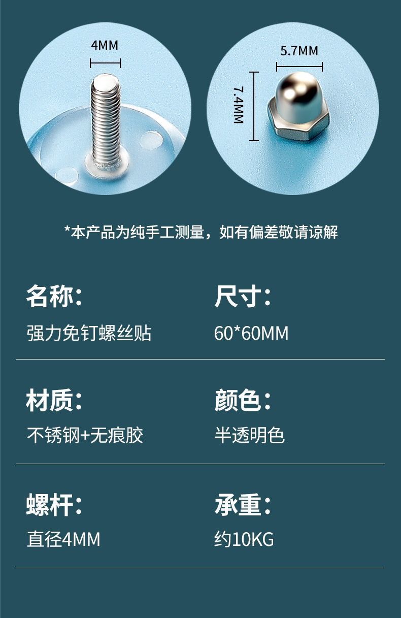不锈钢螺丝贴无痕承重挂钩相框墙钉粘胶金属免钉贴免打孔挂钩