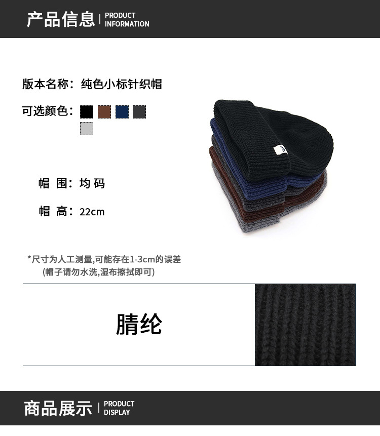 [THE HOBOO] 原创小布标毛线帽女秋冬保暖针织帽男帽子冷帽显脸小