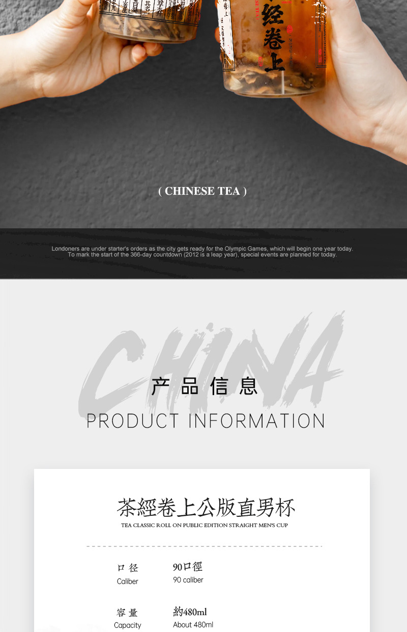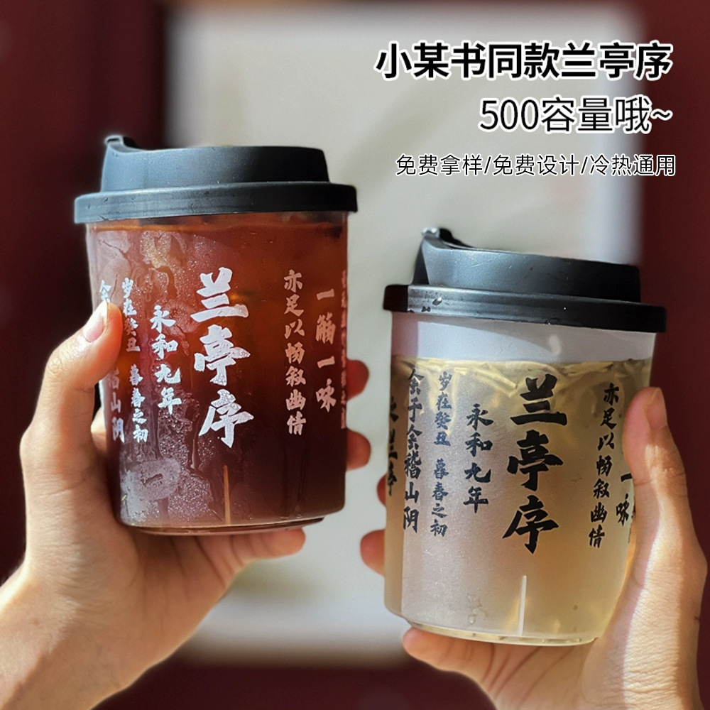 新中国風直男カップ500ml冷たい飲み物カップ使い捨てコーヒーミルクティー射出成形果物カップ