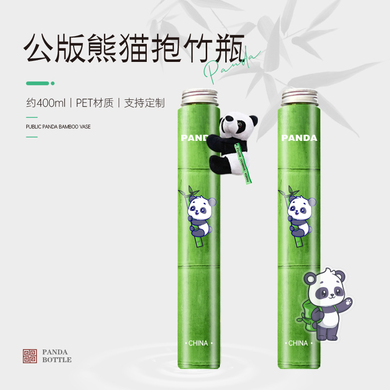 赤い一本は竹のプラスチックの瓶を抱いて細くて長いpetカップのミルクのお茶の瓶を抱いて竹の筒のパンダの桃のコップを延長します。