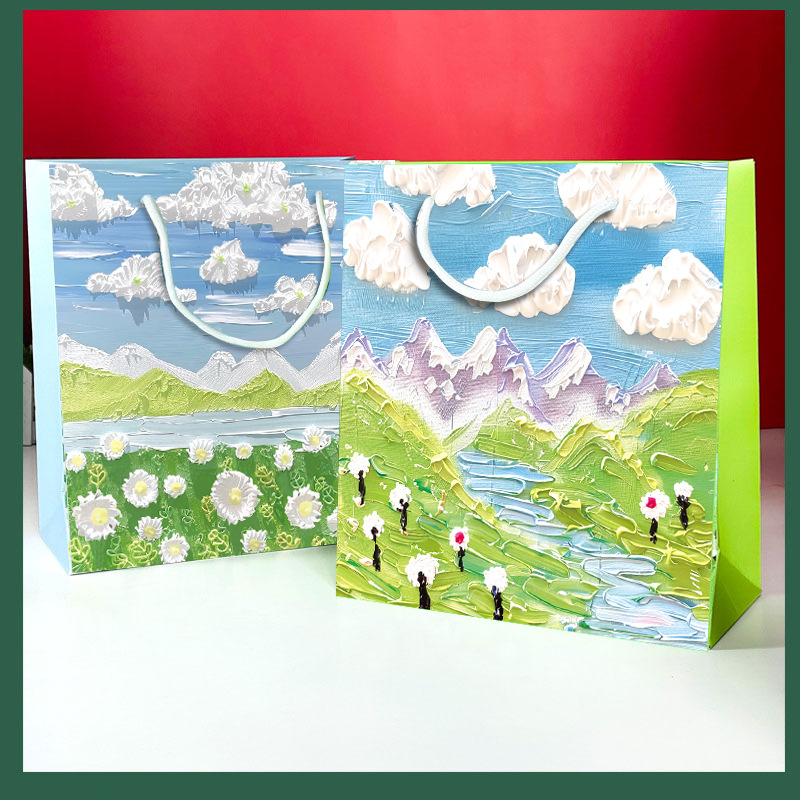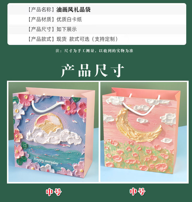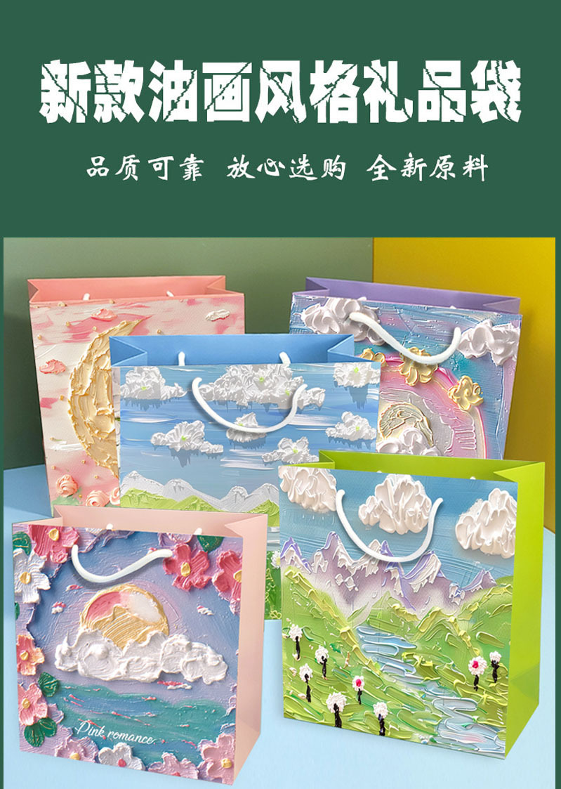 油絵風ギフトバッグ卒業シーズンギフトバッグお土産バッグ高級感ギフトバッグ紙袋ギフト包装袋