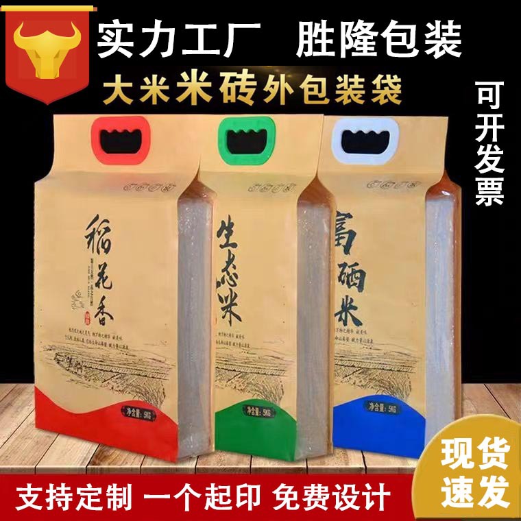 クラフト紙米煉瓦袋現物手提げ米食品包装袋5斤10斤入四辺封米袋