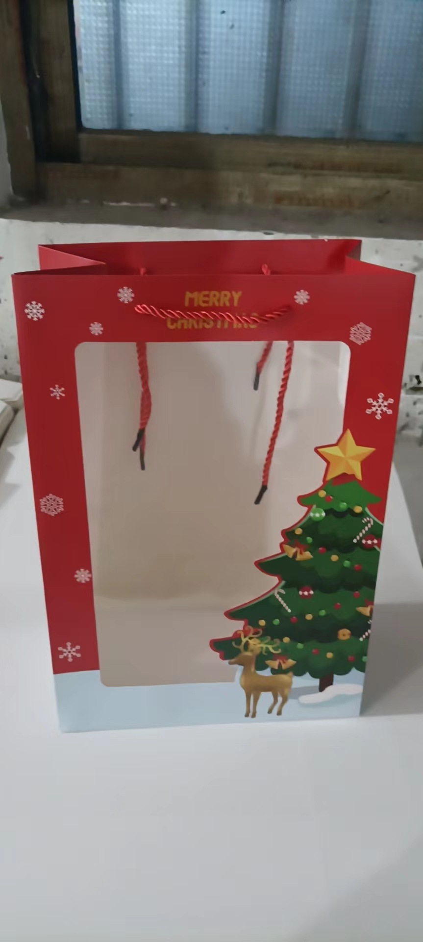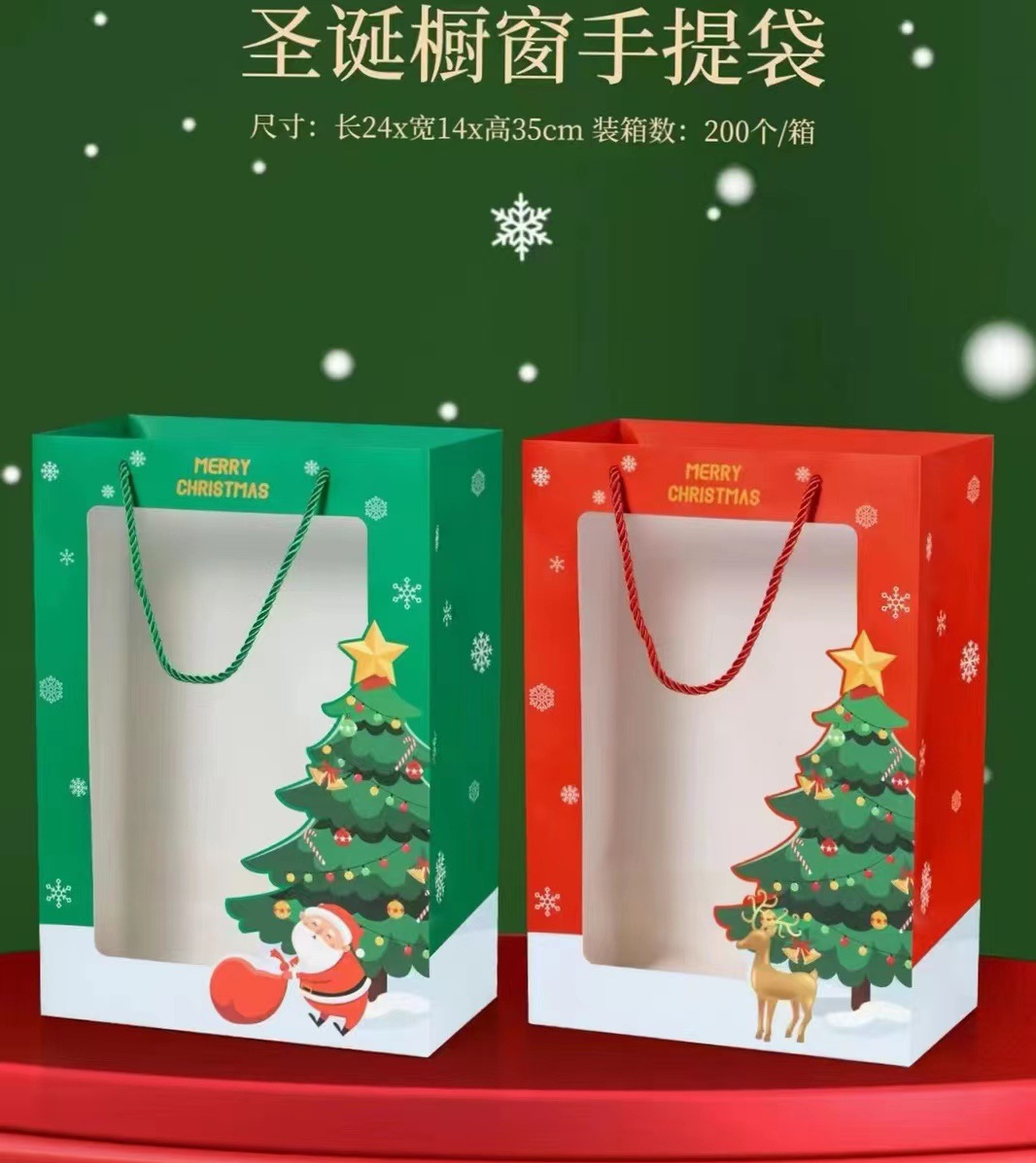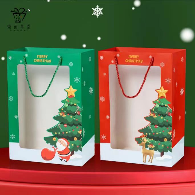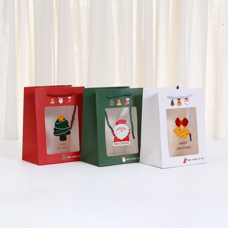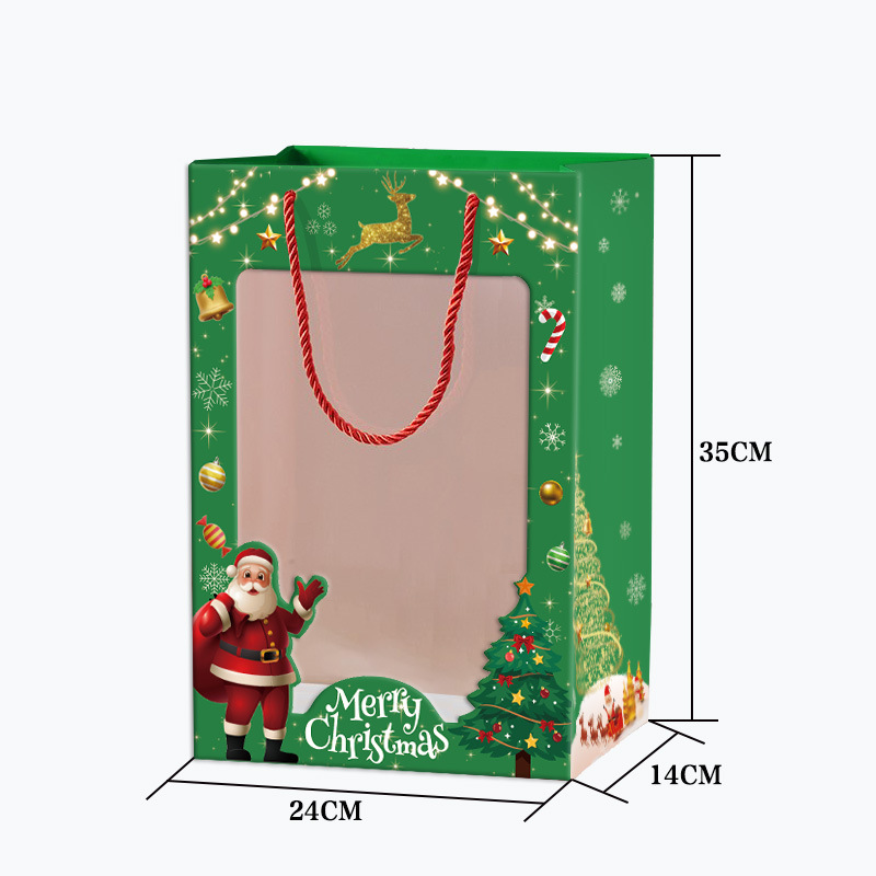 跨境圣诞系列开窗透明手提袋包装袋平安夜礼物袋平安果礼品袋批发