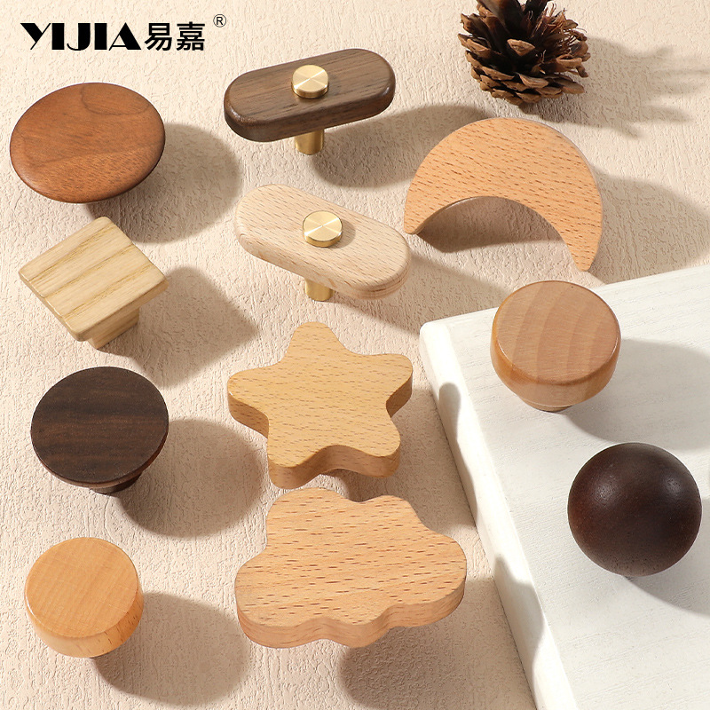 レトロクルミ単穴引き出しキャビネットキャビネットドアハンドル漫画子供部屋ハンドル木製ワードローブドアハンドル