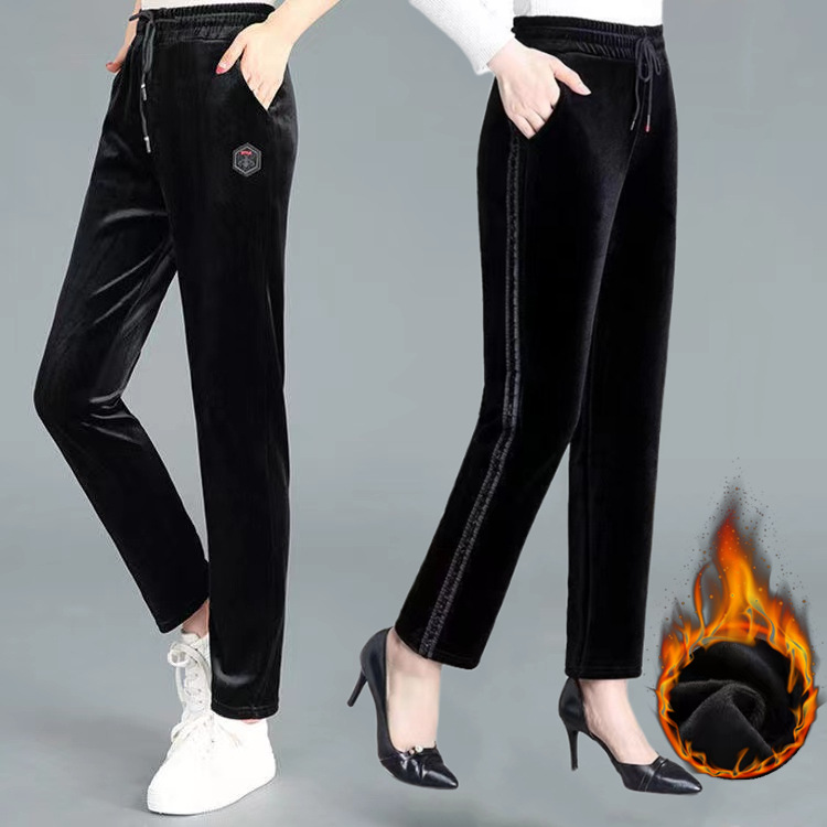 金のベルベットの女性のズボンの中で高齢のお母さんの平毛のカジュアルなズボンの秋冬のベルベットの厚い保温のズボンは江湖を走って熱売します。