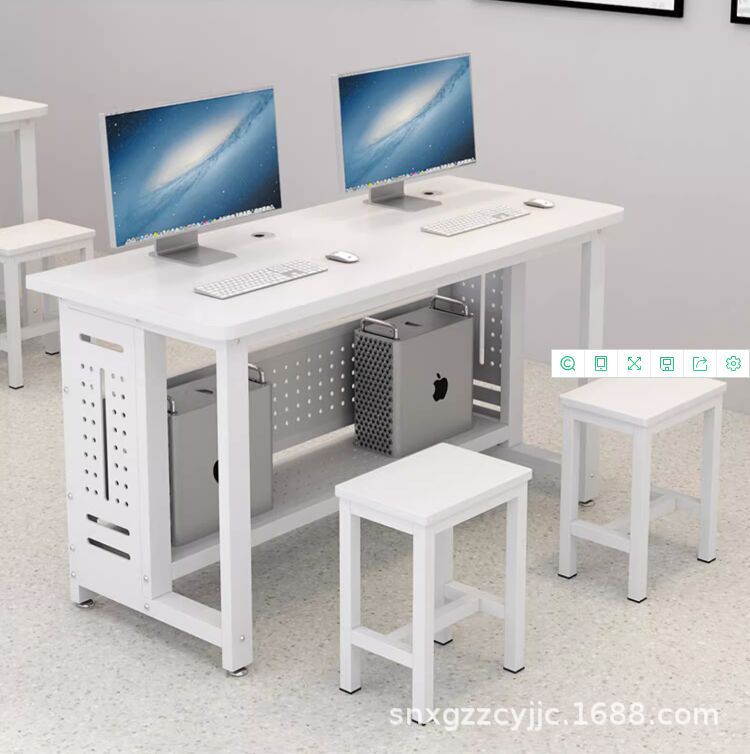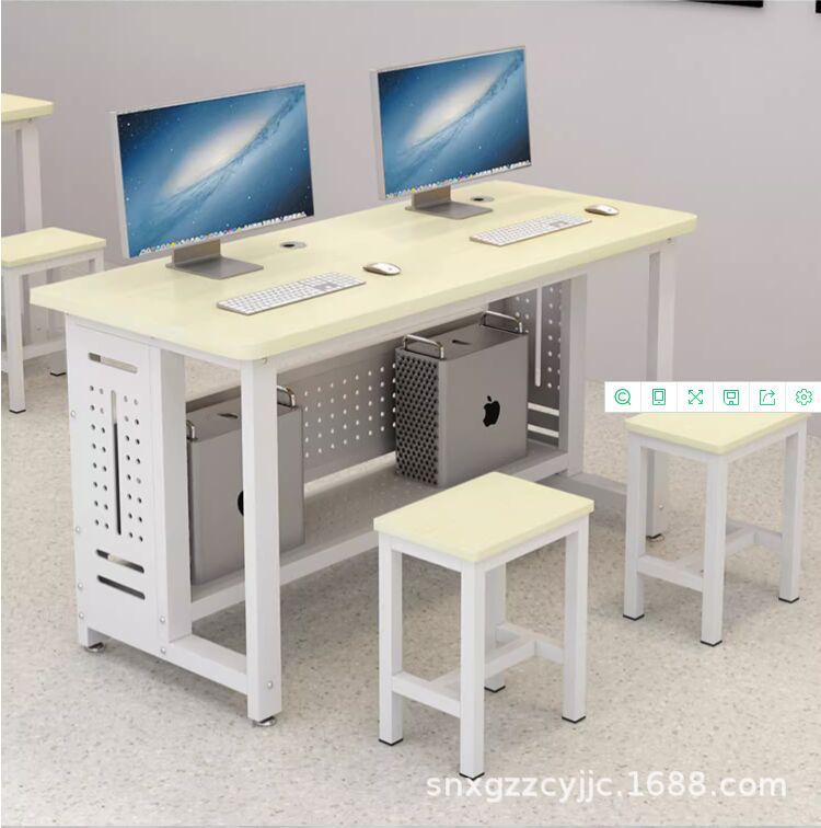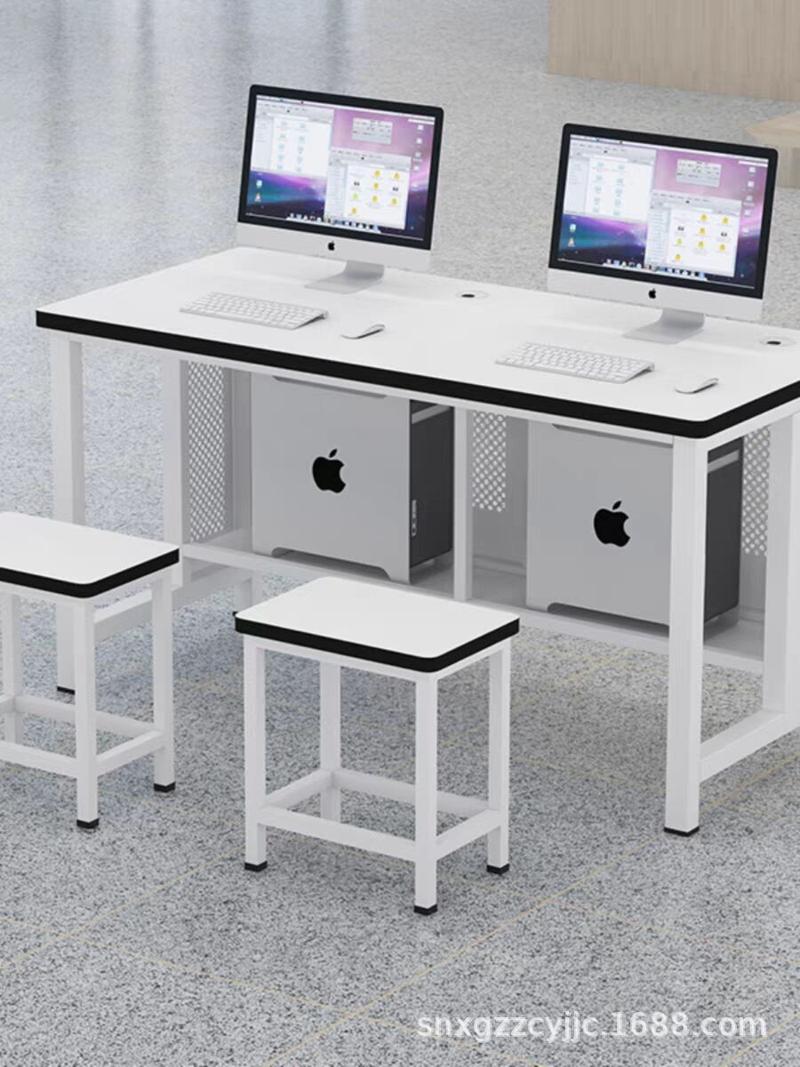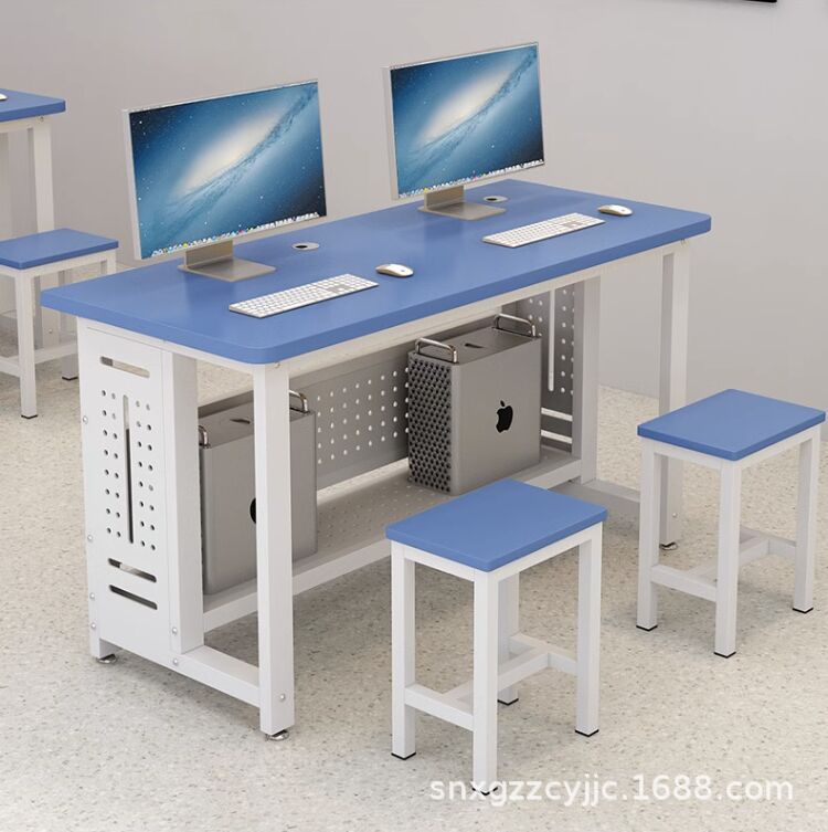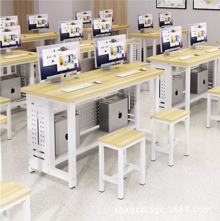 学校のコンピュータ教室のコンピュータのデスクのトレーニング室のコンピュータのクラスの機械室のデスクトップの2人のコンピュータのテーブルと椅子