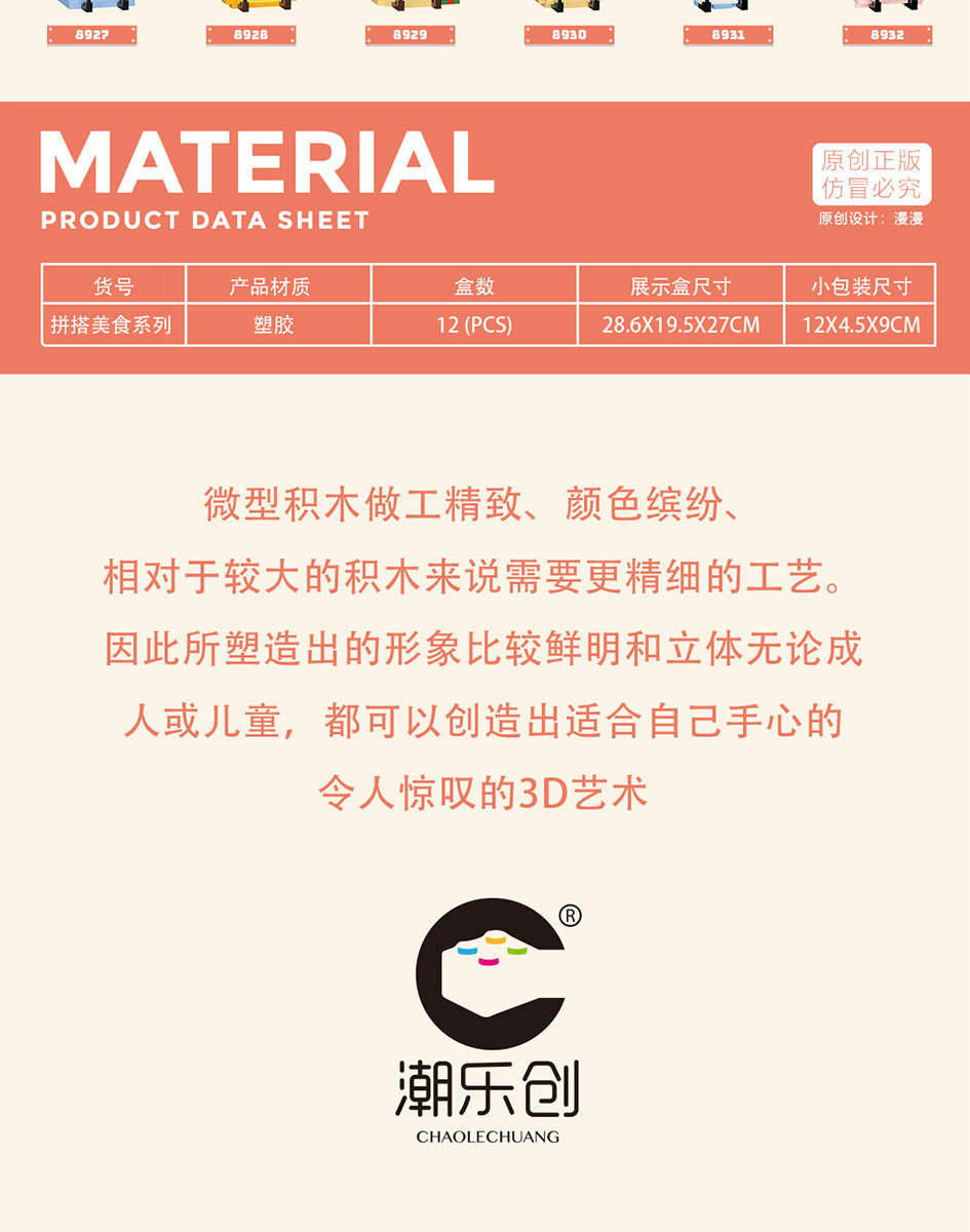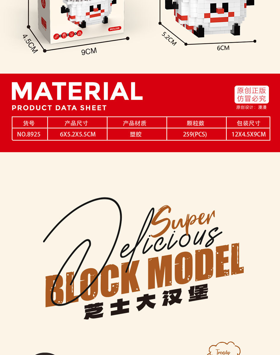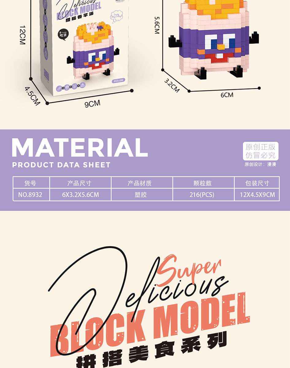 潮乐创微颗粒积木仿真美食薯条汉堡拼装模型8921-8932批发代发
