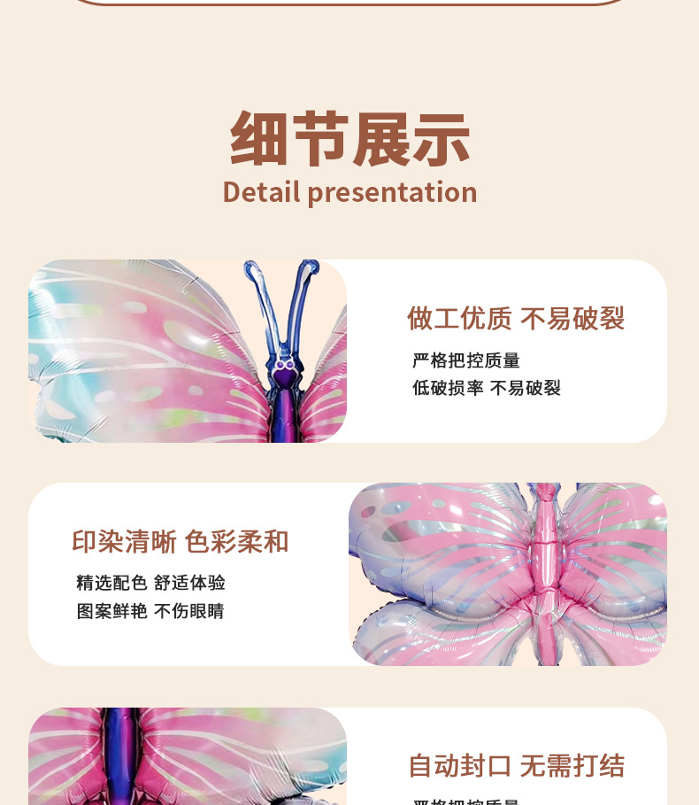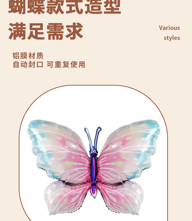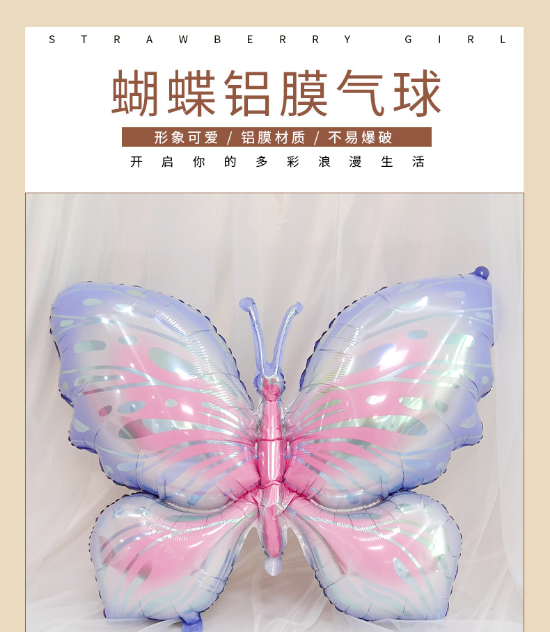 新款双持侧飞蝴蝶铝膜气球双翅生日圆球气球布置生日主题装饰气球