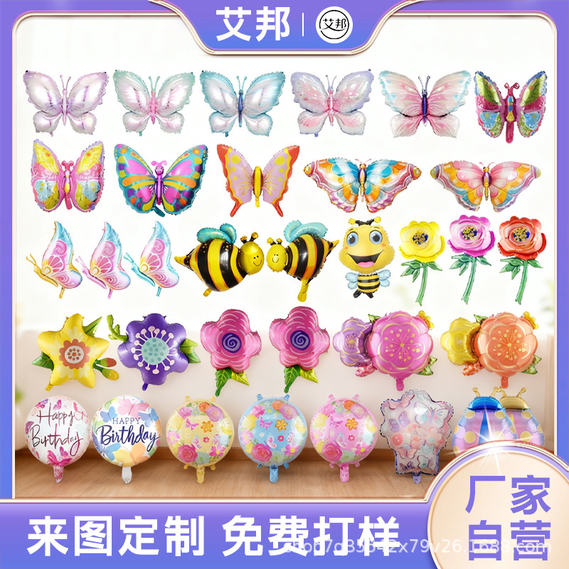 横飛蝶テントウムシ花アルミ膜風船子供誕生日パーティー装飾蝶造形風船卸売り