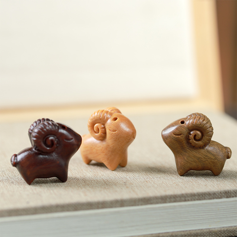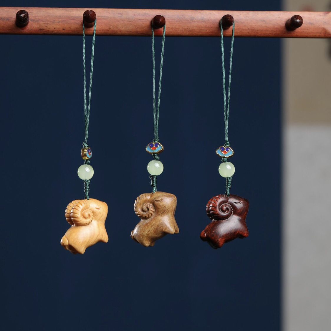 緑檀のかわいい山羊のペンダント、携帯電話の飾り、携帯電話のチェーン、木製キーホルダー、十二支