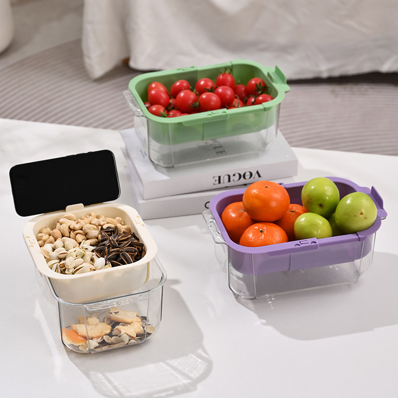 高颜値透明家庭用二重怠惰な果物皿伸縮野菜果物水たまり客間間食収納箱