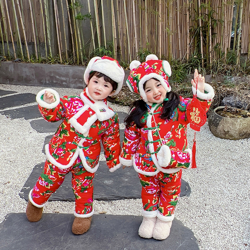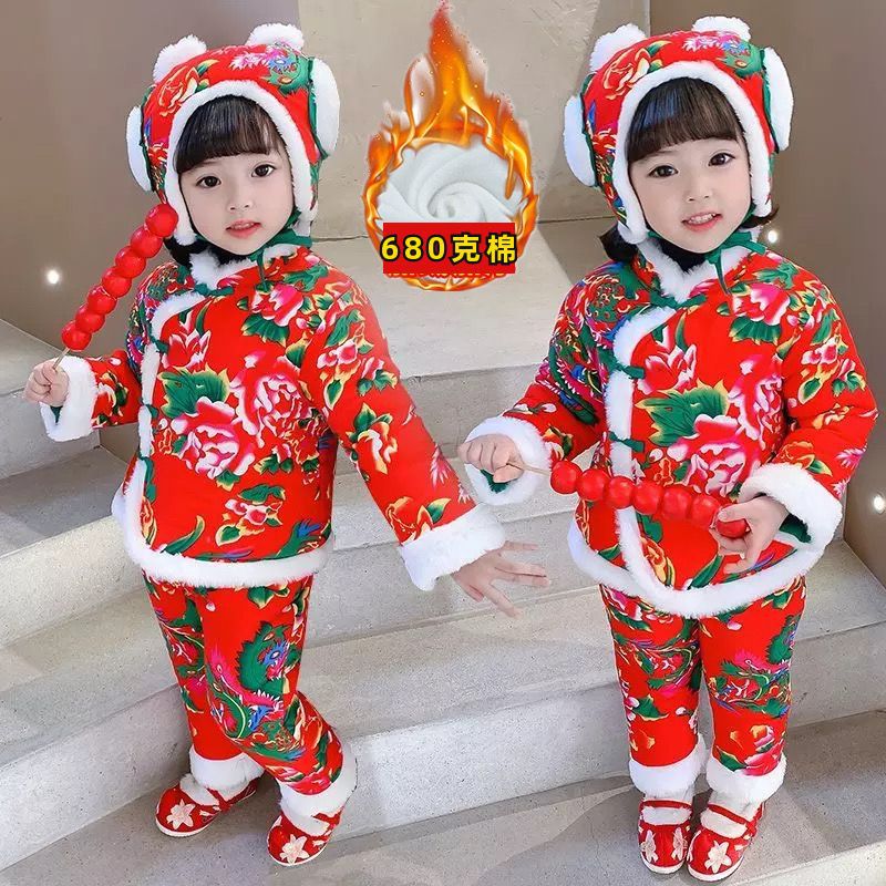 东北大花棉袄儿童手工套装宝宝冬季校服棉服女童加厚拜年男童