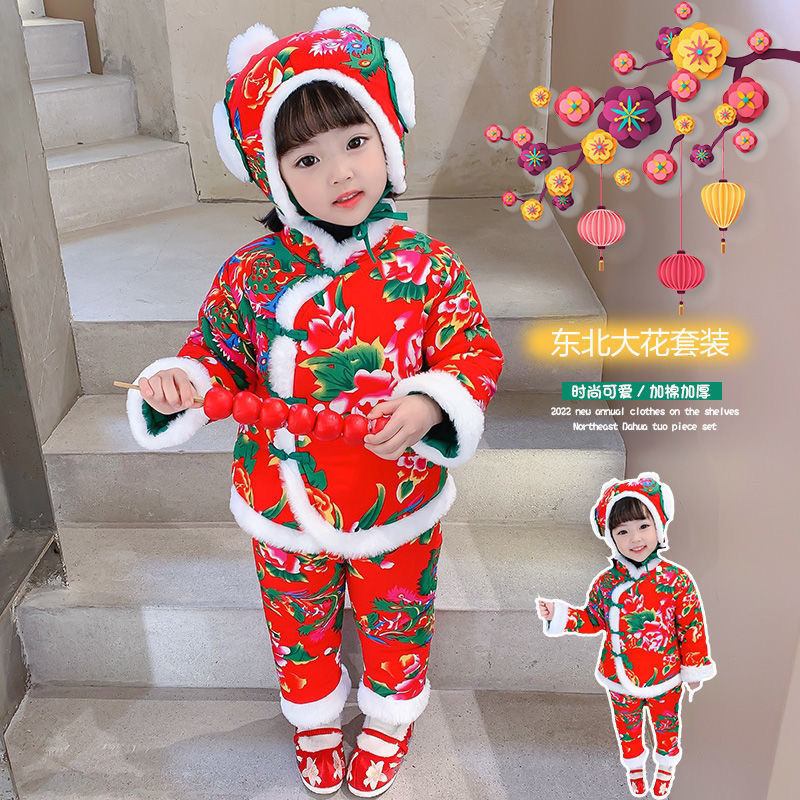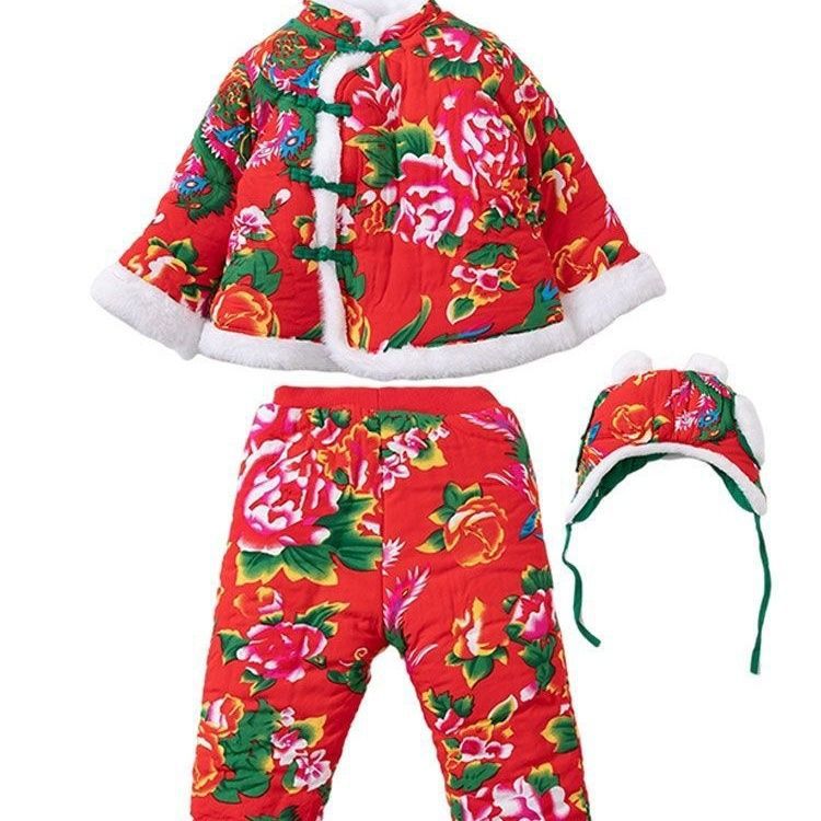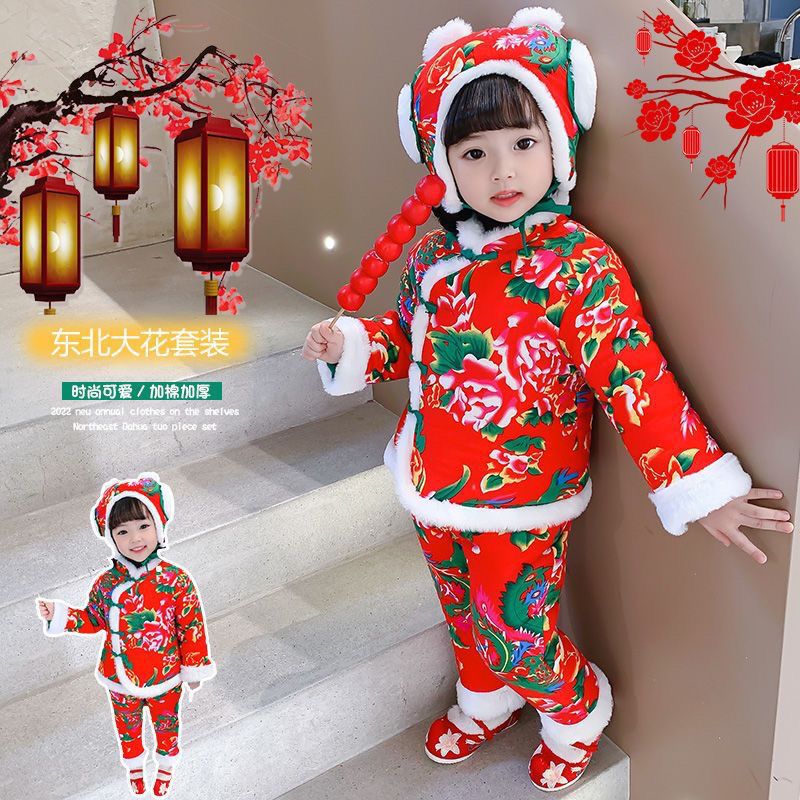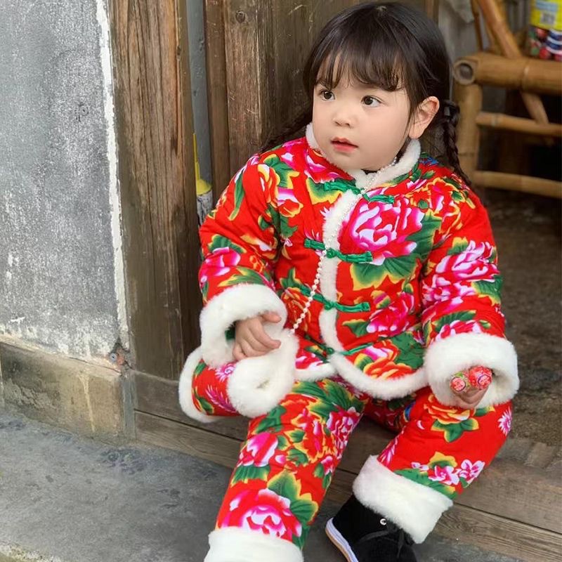 东北大棉袄花袄儿童手工套装秋冬款宝宝可爱喜庆防寒保暖拜年服装