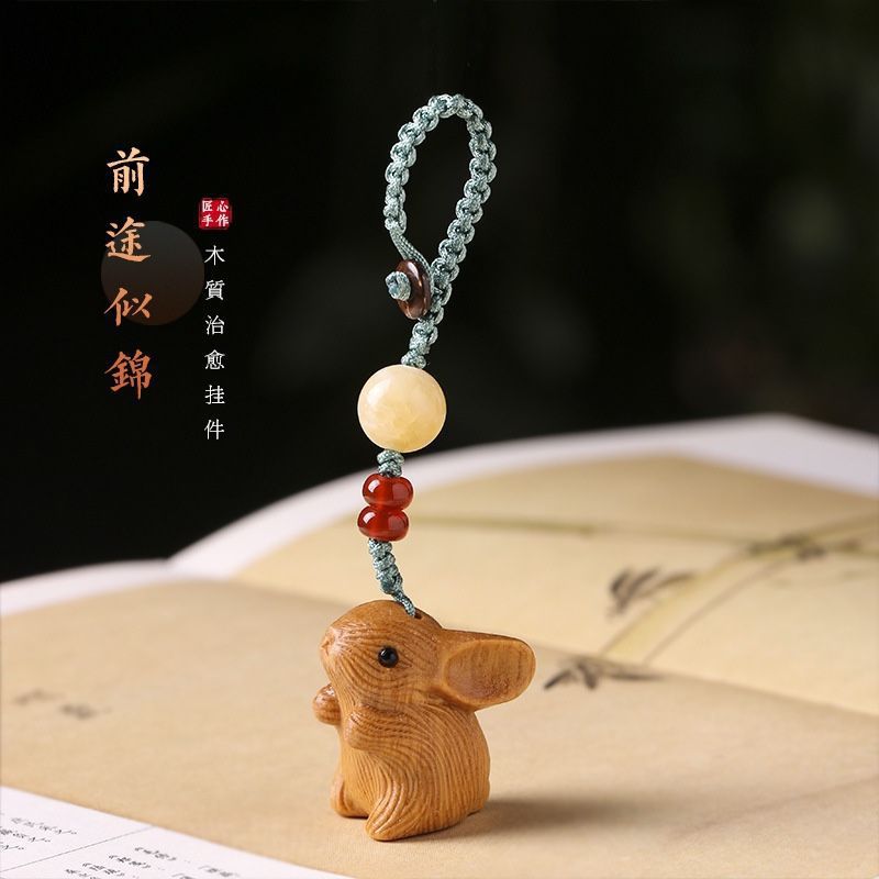 紫檀木の生肖の本命仏はウサギ年の創意の飾りのチェーンの男性の女性の自動車の鍵のペンダントのキーホルダーです。