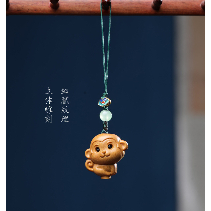 木彫りのかわいい小猿の携帯電話用ペンダント、キュートな漫画風十二支の猿、クリエイティブなバッグアクセサリー、小さなギフト