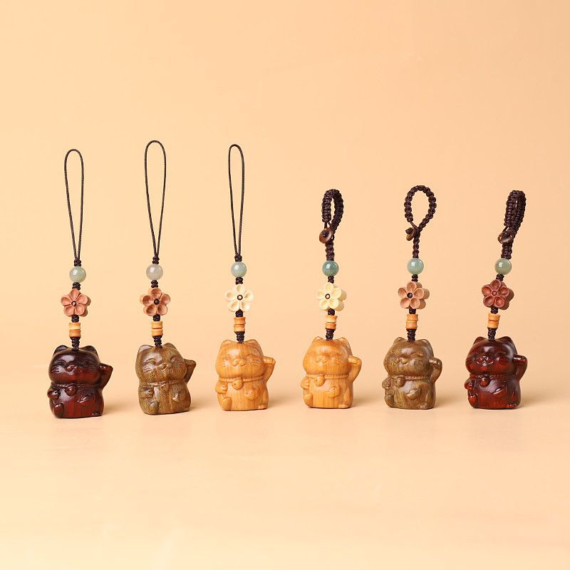 檀木猫のキーホルダーのペンダントネットの赤いかわいい携帯電話のu盤の縄の男女の自動車のチェーンのスプーンの輪の環は装飾を掛けます。