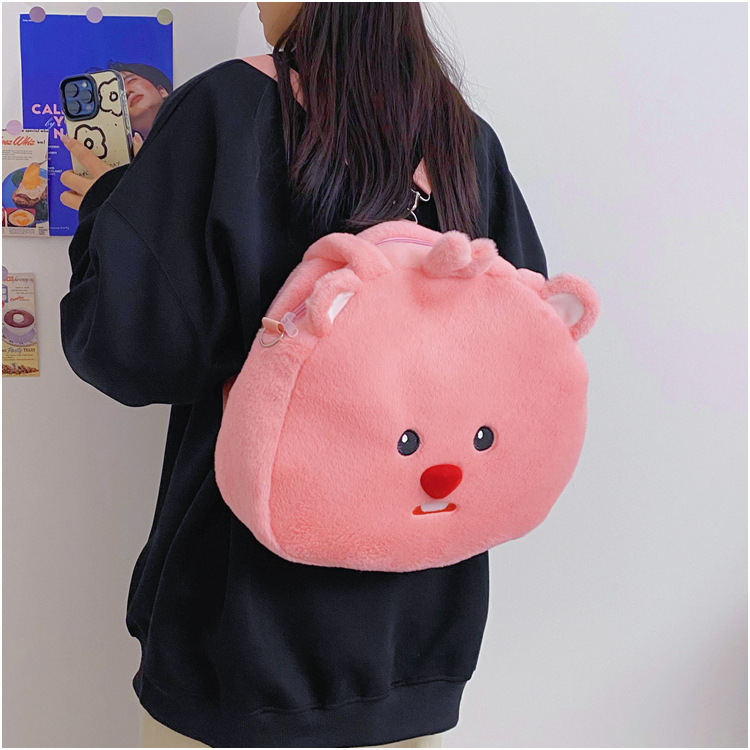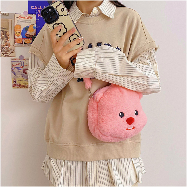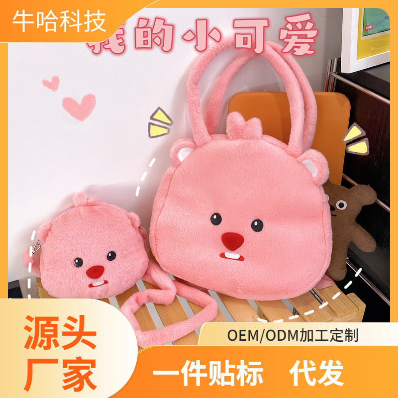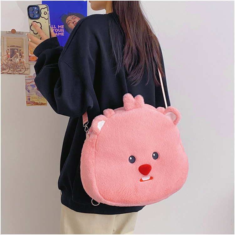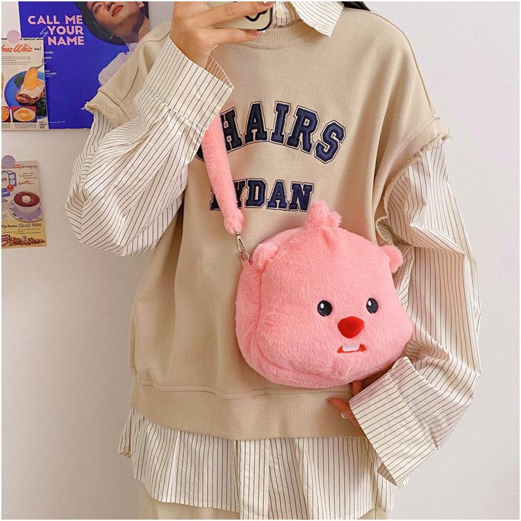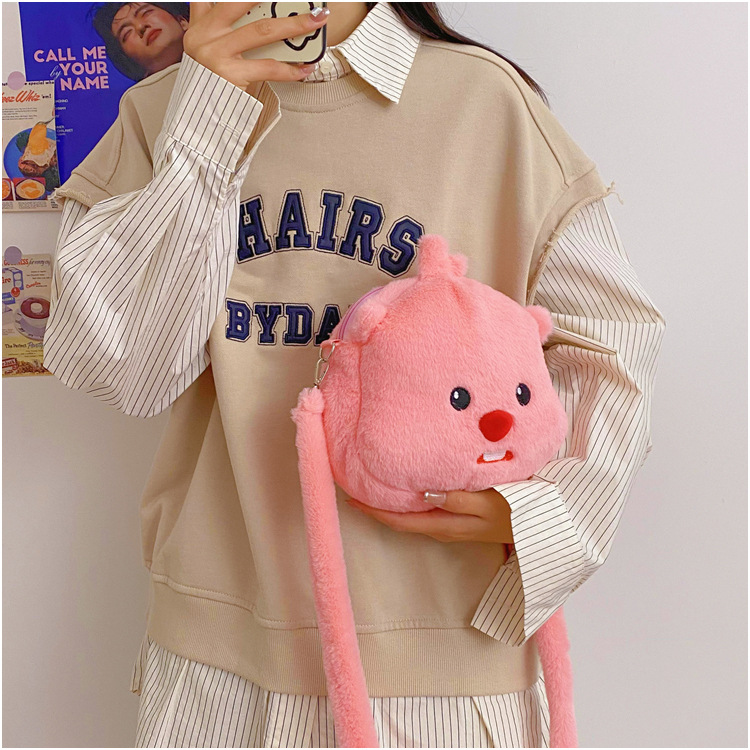 ぬいぐるみビーバーのバックパック、漫画風のかわいいショルダーバッグ、斜め掛けバッグ、女の子用化粧ポーチ、工場卸売、小さなクマ