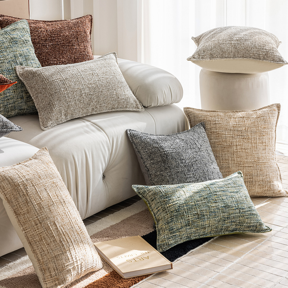 彩色雪尼尔抱枕多色单面压边跨境样板间靠垫套沙发抱枕套床头客厅