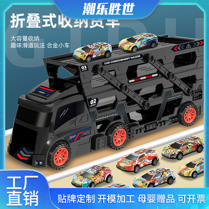 子供のおもちゃ、トラックレール、合金製ミニカー、エンジニアリングコンテナ、折りたたみトラック、男の子の誕生日プレゼント、電動カー、射出式