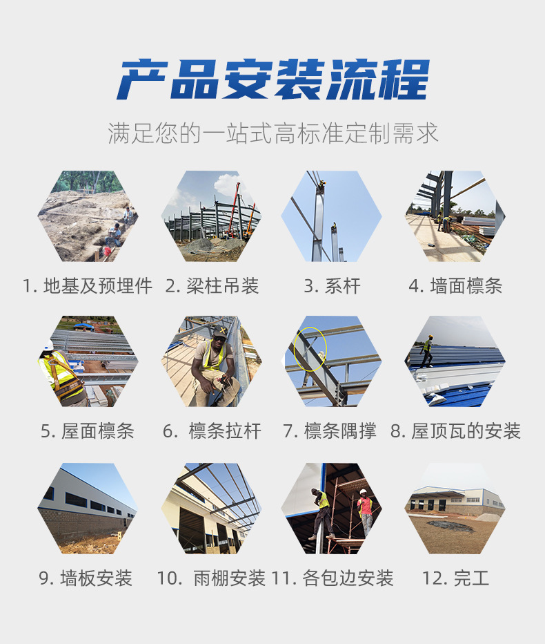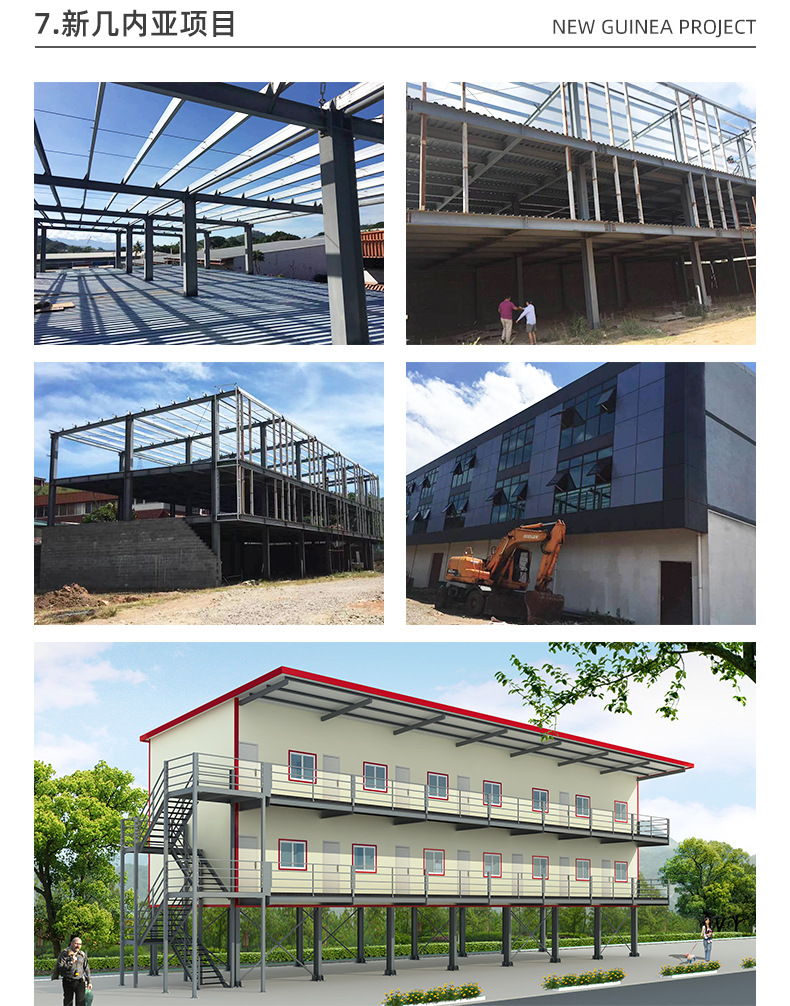 鉄骨構造工場、軽量鉄骨ヴィラ、建設現場、簡易住宅、倉庫、プラットフォーム、大スパン鉄骨構造工事