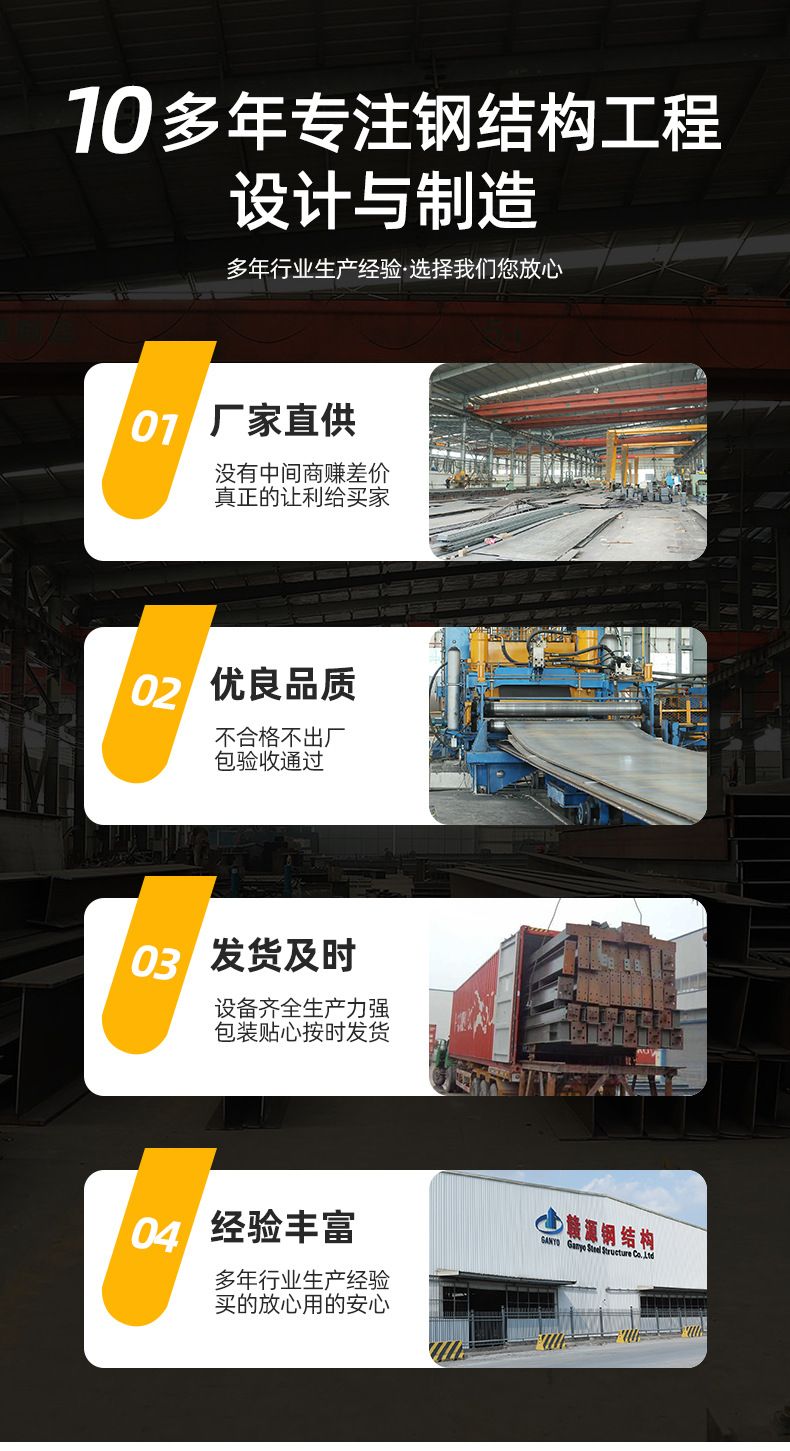 メーカーは屋外大型鉄骨構造工事、網棚鉄骨構造建築、走行室鉄骨構造工場を引き受けます。