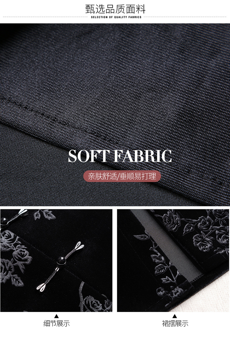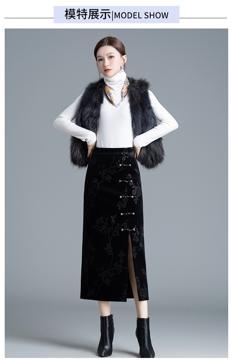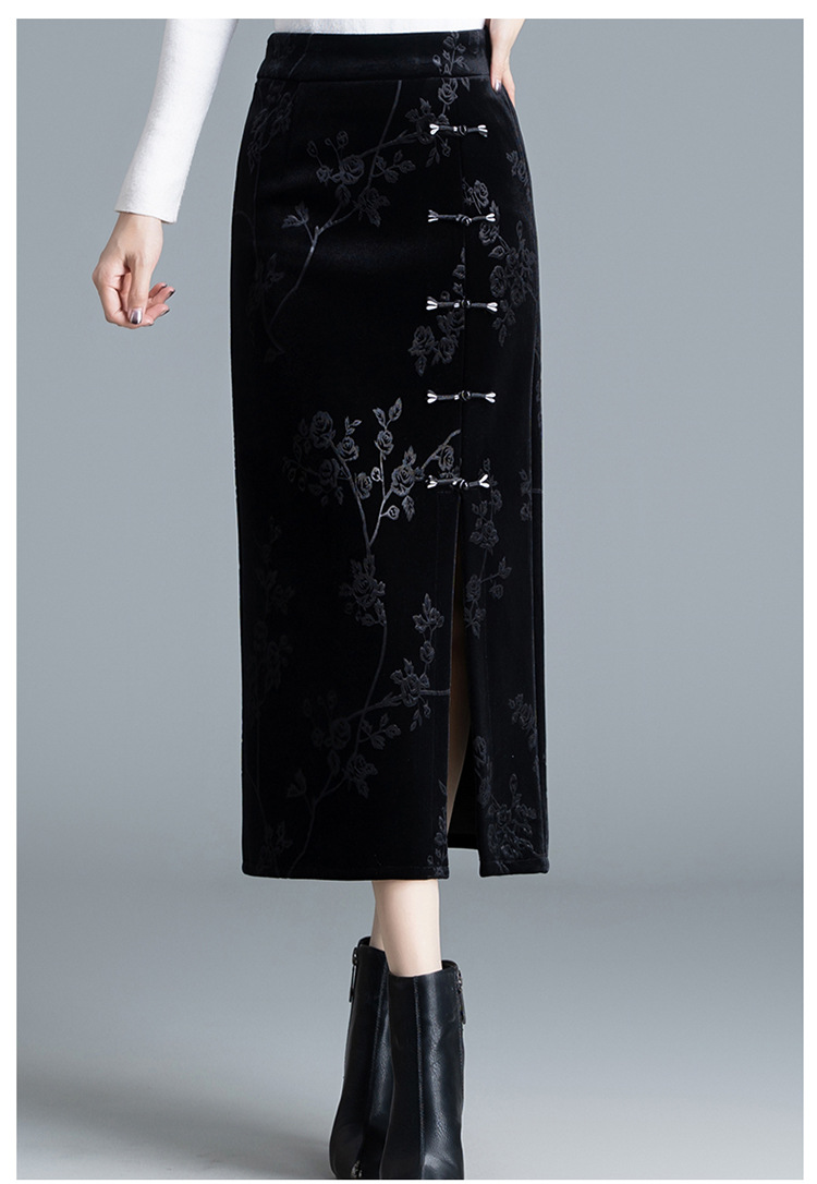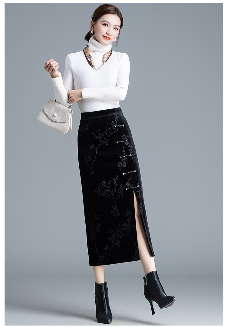 新中式金糸ベルベットストレートスカート ハイウエストワンステップスカート ミモレ丈カジュアルスカート 2025秋冬新作