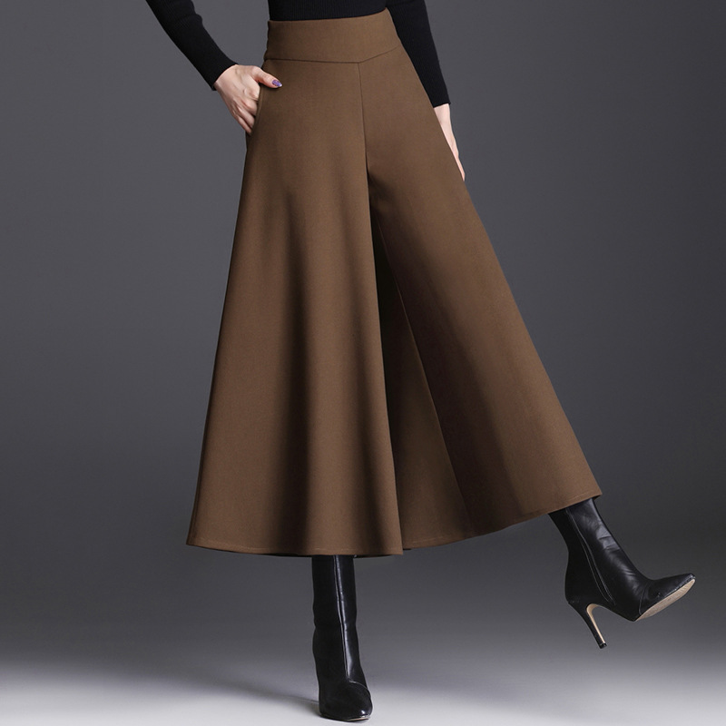 ウール素材のワイドレッグパンツ レディース 秋冬 2025年新作 ハイウエスト 九分丈パンツ 大きいサイズ ゆったり ワイドパンツ 黒 パンツスカート