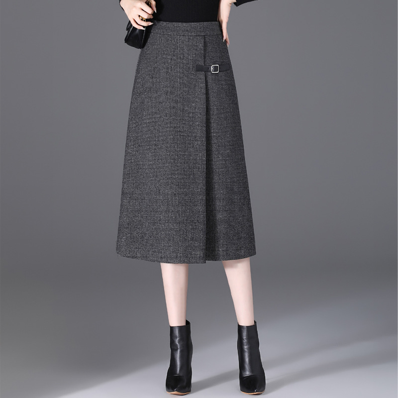 羊绒毛呢半身裙女秋冬季2025新款垂感a字气质高腰大摆灰色长裙
