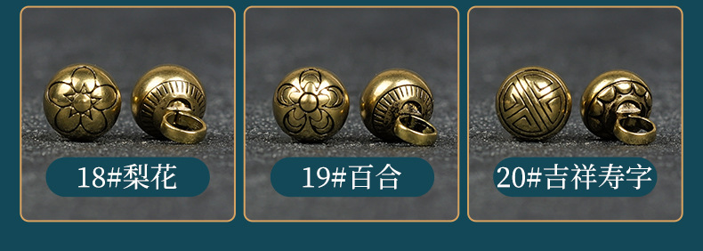 实心黄铜旗袍纽扣唐装汉服圆形刻花扣子复古祥云中式菊花盘扣珠子