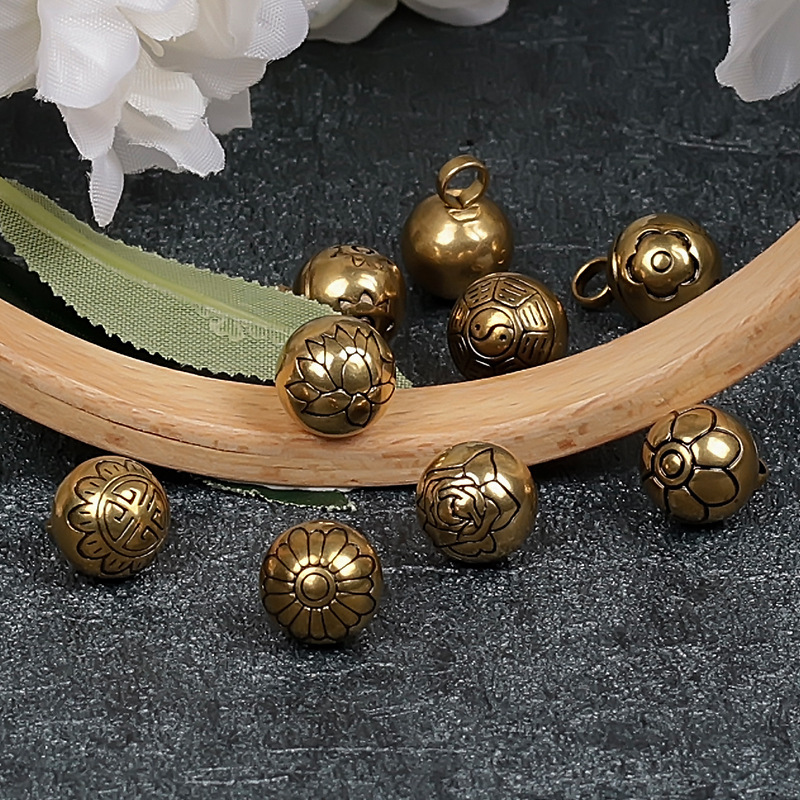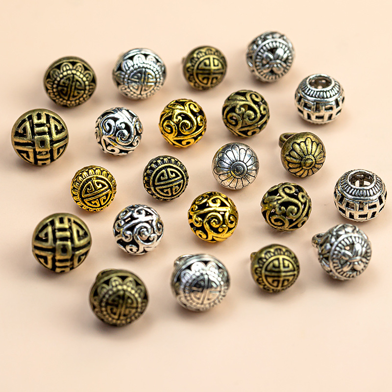 旗袍纽扣盘扣唐装汉服圆形刻花珠子黄铜青铜古金国风中式祥云复古