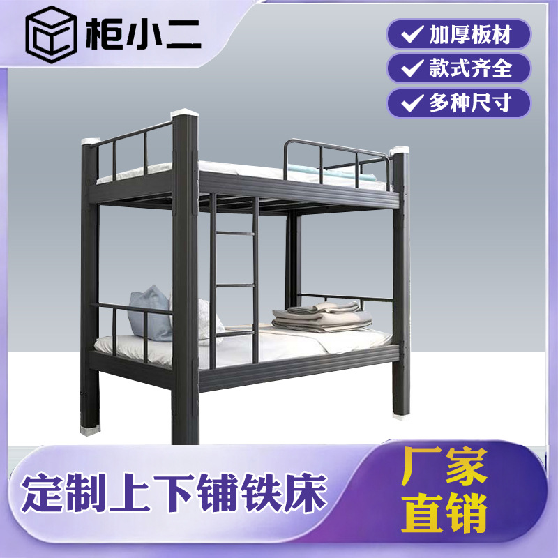 メーカーは従業員の鉄芸ベッドの学生マンションの工事現場の鉄棚の上下に寮の二人の型材の上下ベッドを敷いています。