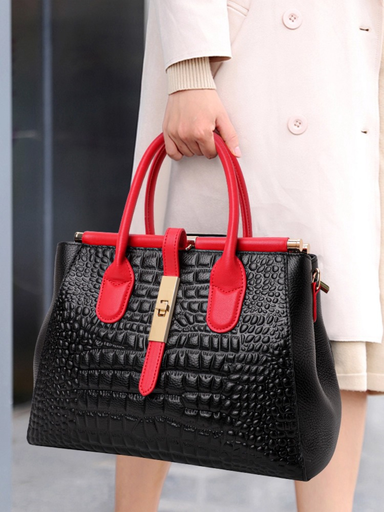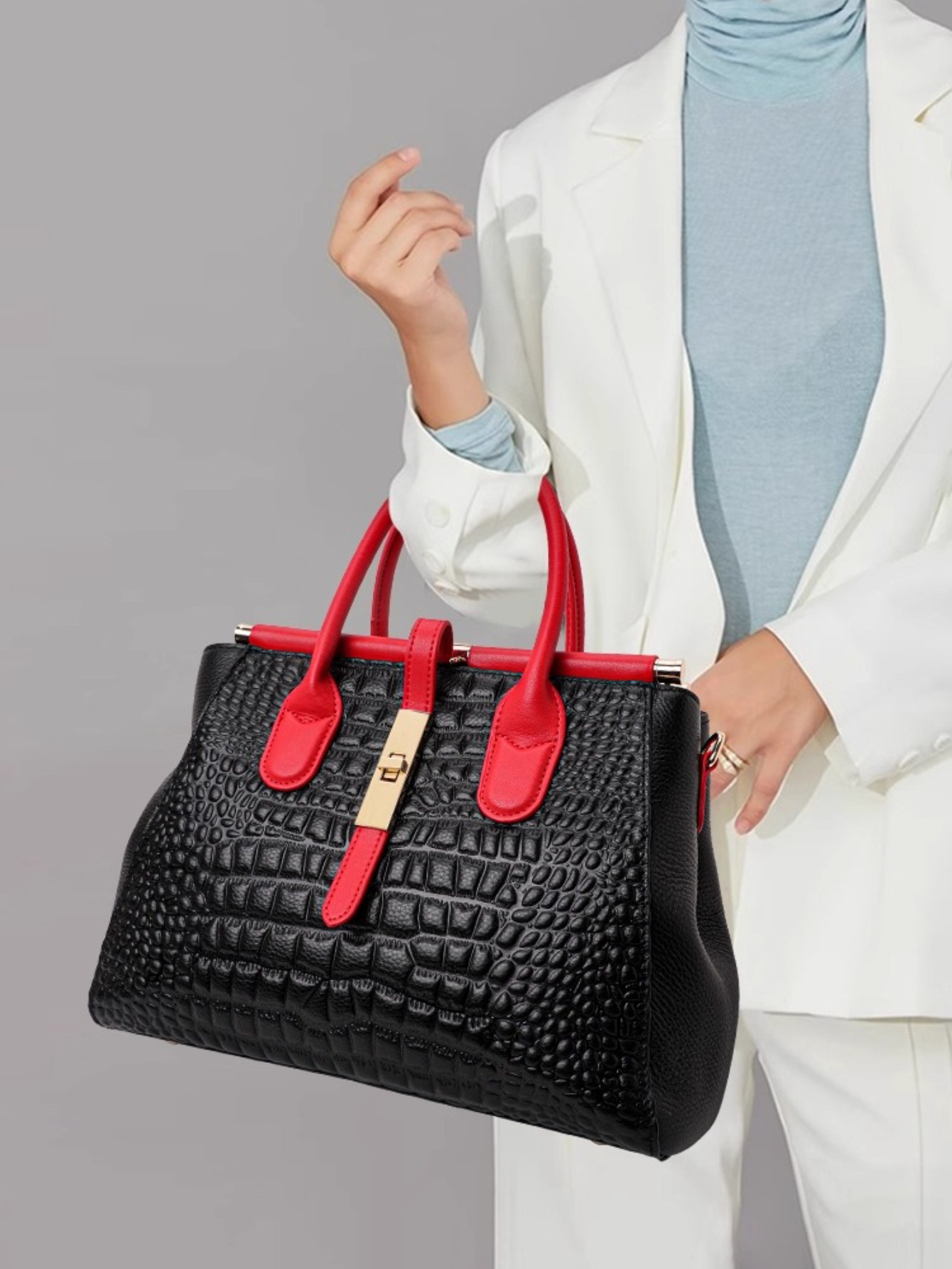 クロスボーダーTEMU専用レディース本革ステッチハンドバッグ大容量両面可日韓ファッション斜め掛けショルダーバッグ