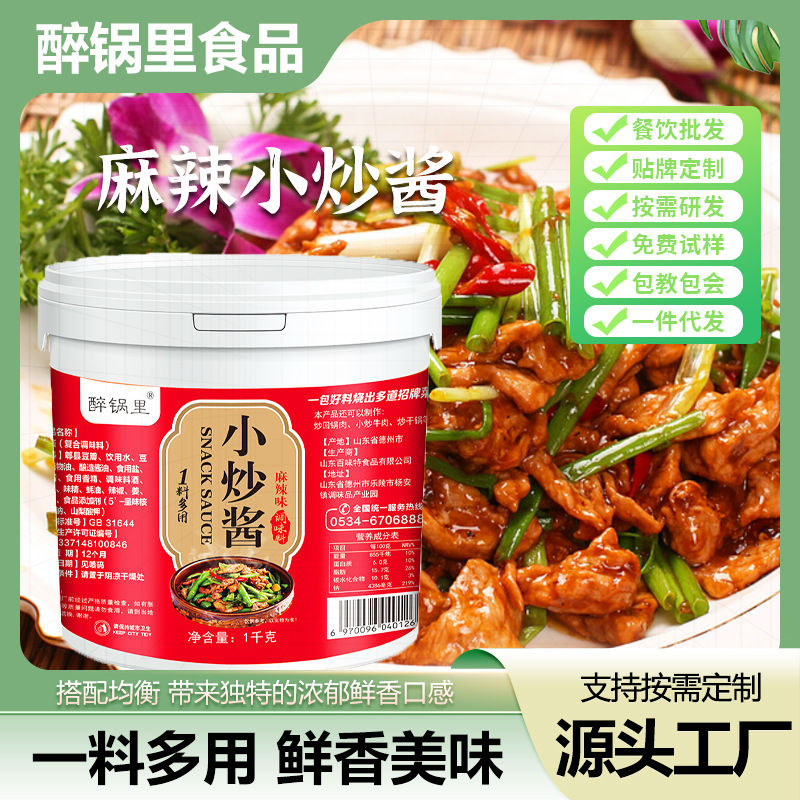 小炒めソース飲食重慶風味小炒め調味料唐辛子炒め肉調味料卸売り桶に麻辣小炒めソースを入れる